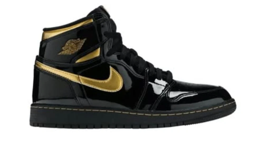 Nike Air Jordan 1 High OG Black Gold Patent Leather Shoes