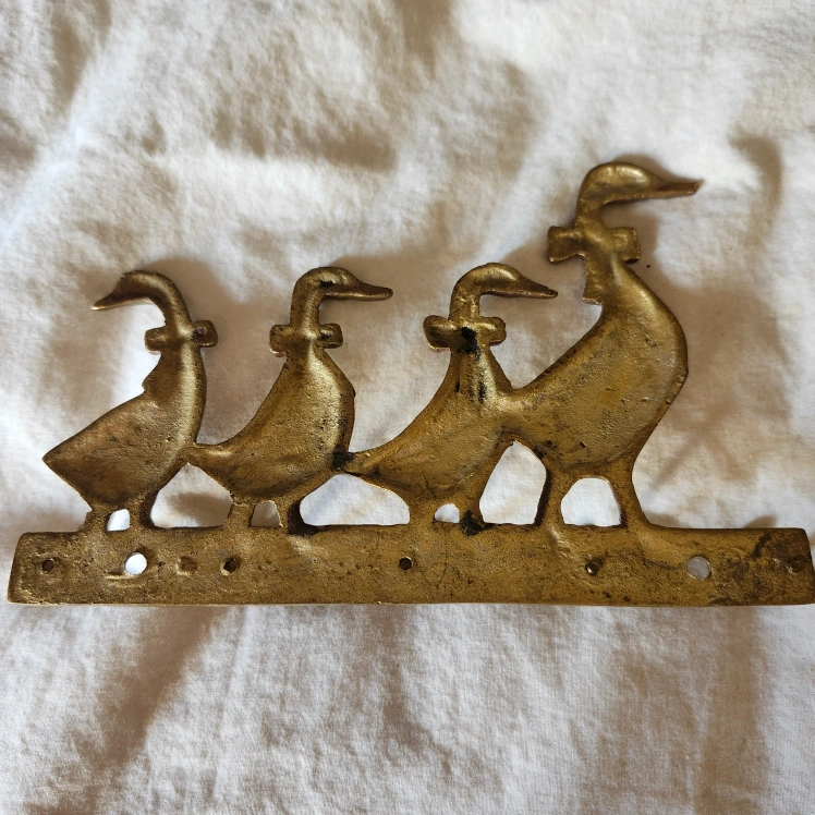 Selling two vintage brass key holders! One features a charming row of ducks with bows, and the other has a nautical theme with a sailboat and a house. They're both in great condition and ready to add some character to your entryway or any room