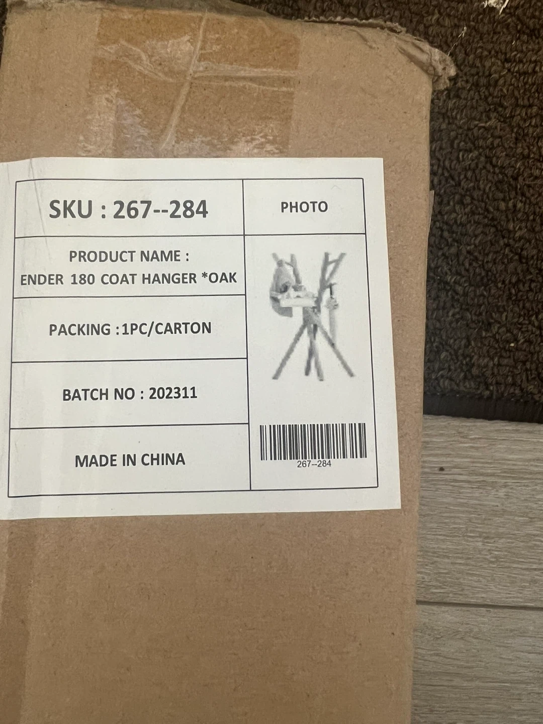Selling an Ender 180 Coat Hanger made of Oak! It's still brand new in the box, never been opened. Perfect for adding a touch of natural style to your entryway or bedroom. The box includes all the original components for easy assembly
