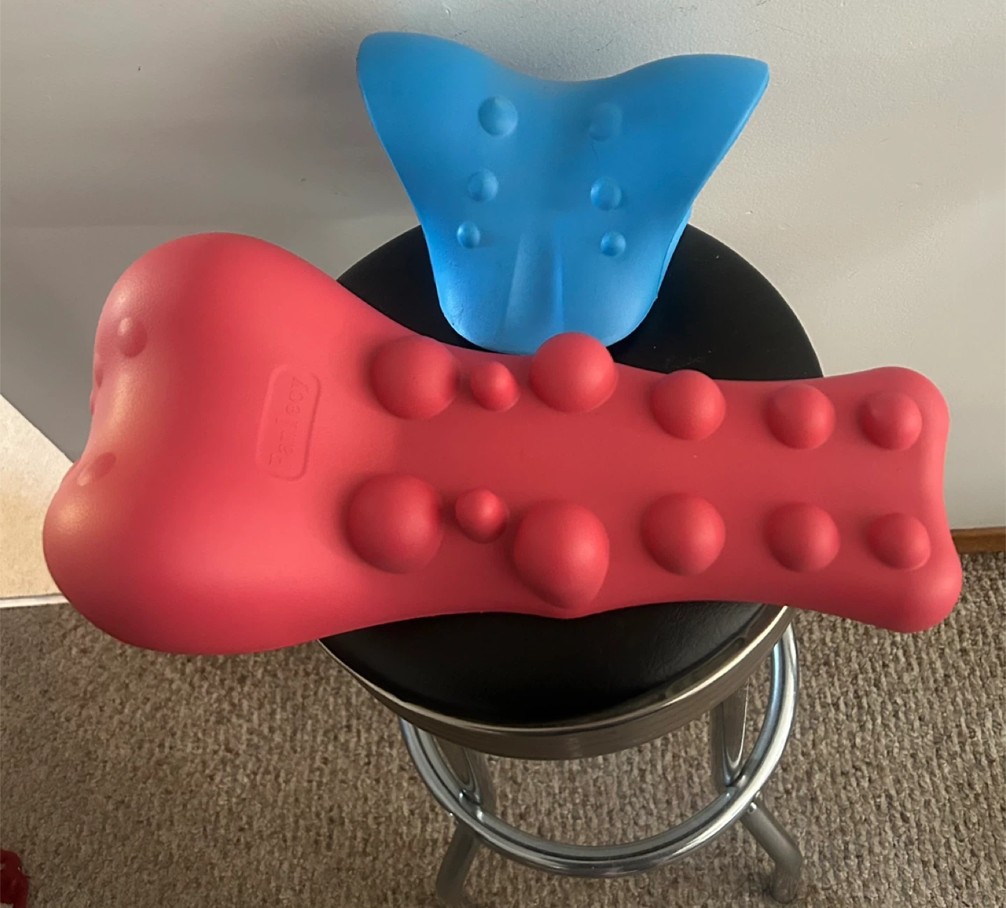 Get some relief with these neck and shoulder relaxers! One is a pretty pink and the other is a calming blue. They're designed to help ease tension and relax your muscles
