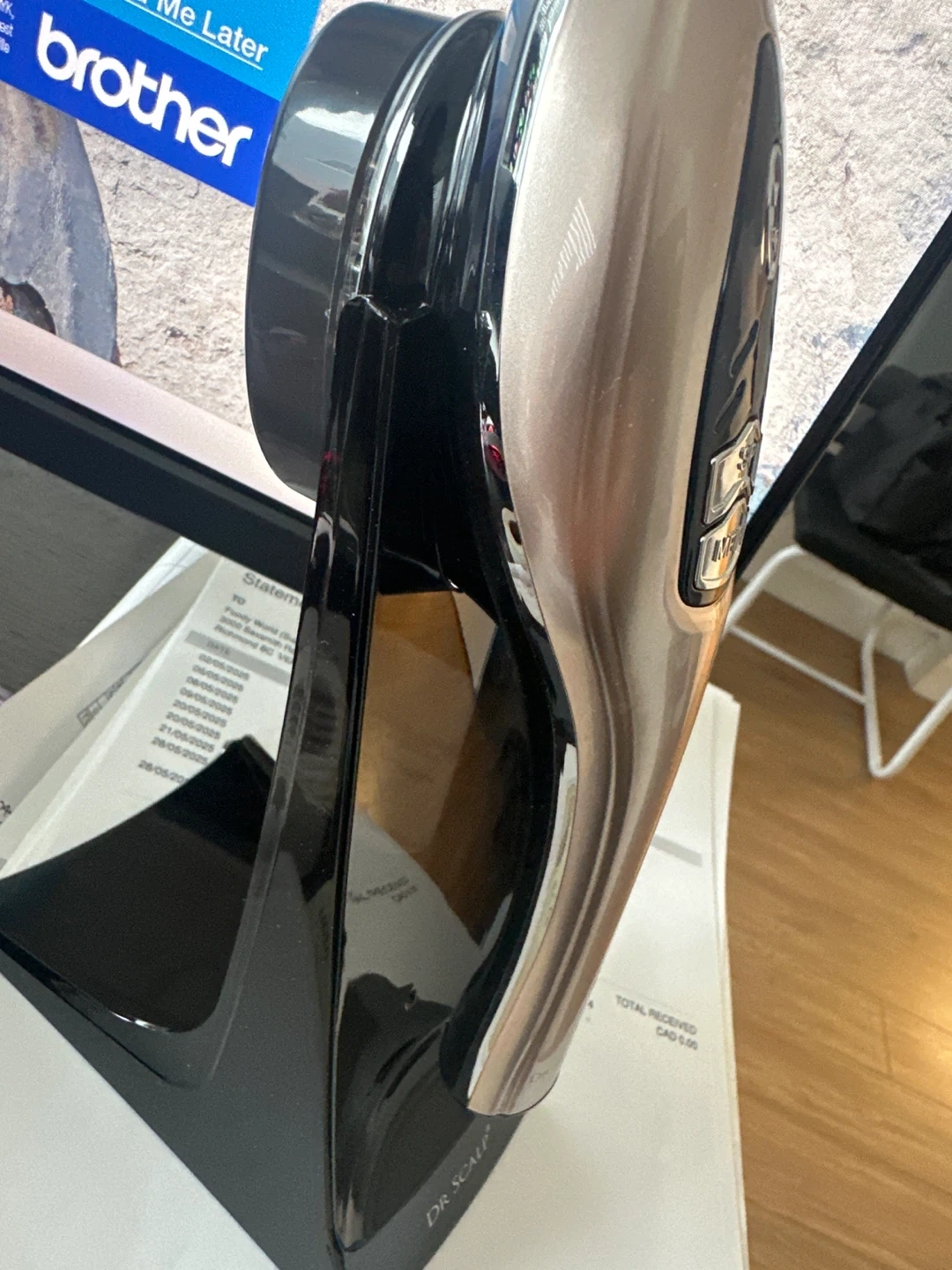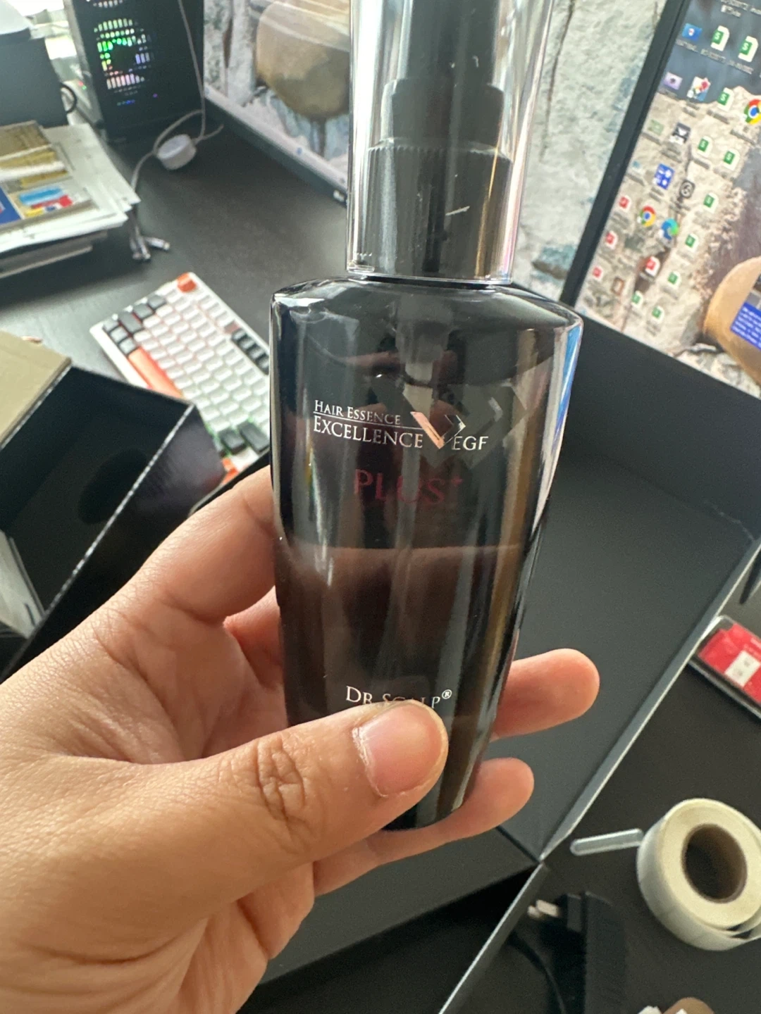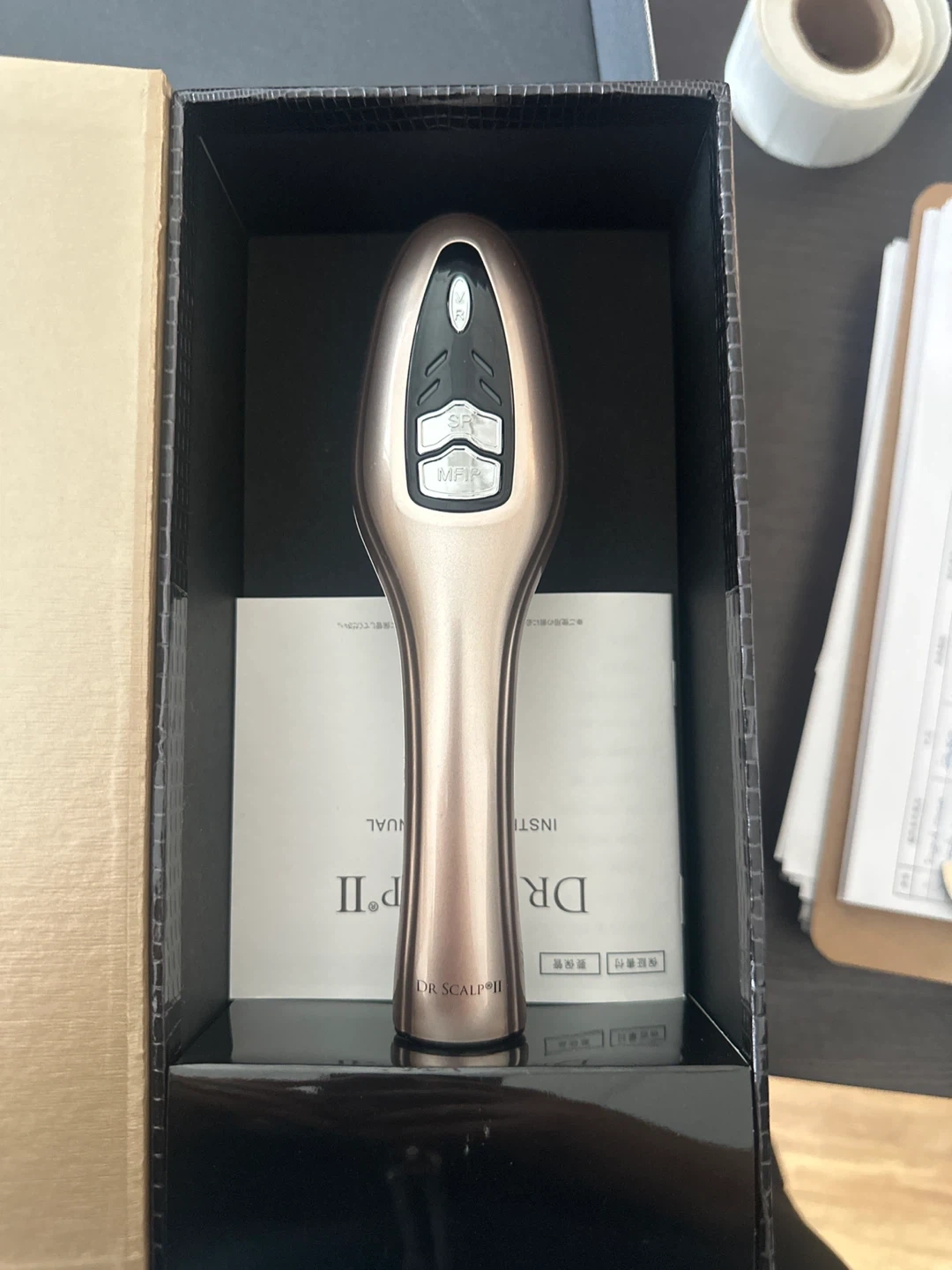 Selling a DR. SCALP II hair device. It comes with the original box and an Excellence VEGF PLUS+ Hair Essence. This device uses light therapy to help with hair health. It's in great condition!