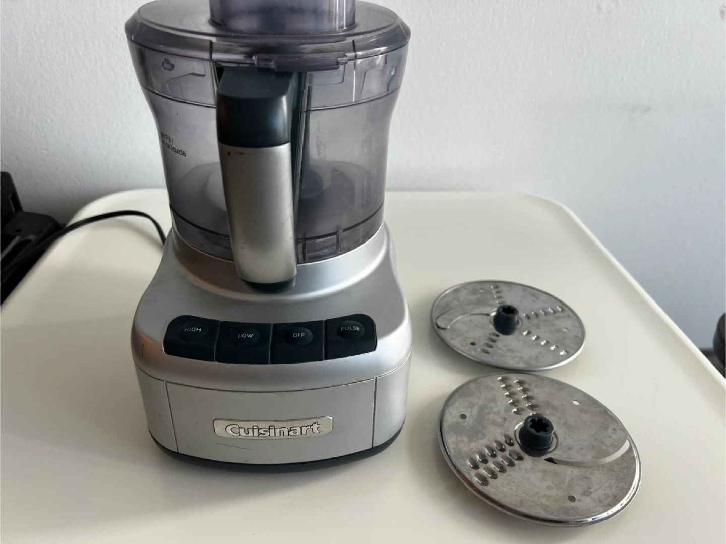 Selling a Cuisinart food processor. It comes with two blades and has settings for high, low, off, and pulse. Great for all sorts of food prep!
