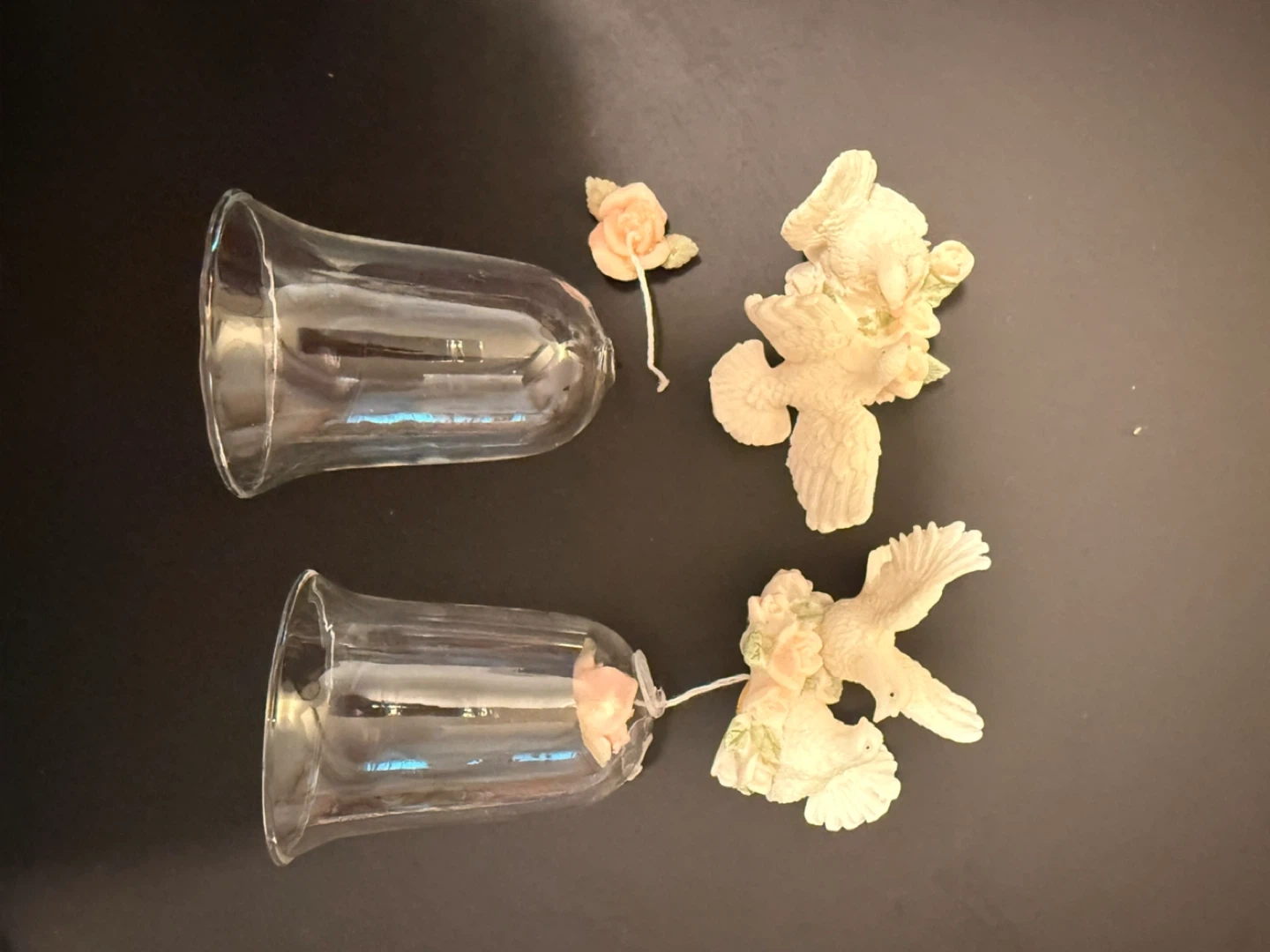 Selling a set of vintage wedding cake toppers. These are in great condition and perfect for adding a touch of nostalgia to your special day! Includes two glass bells and two dove cake toppers.