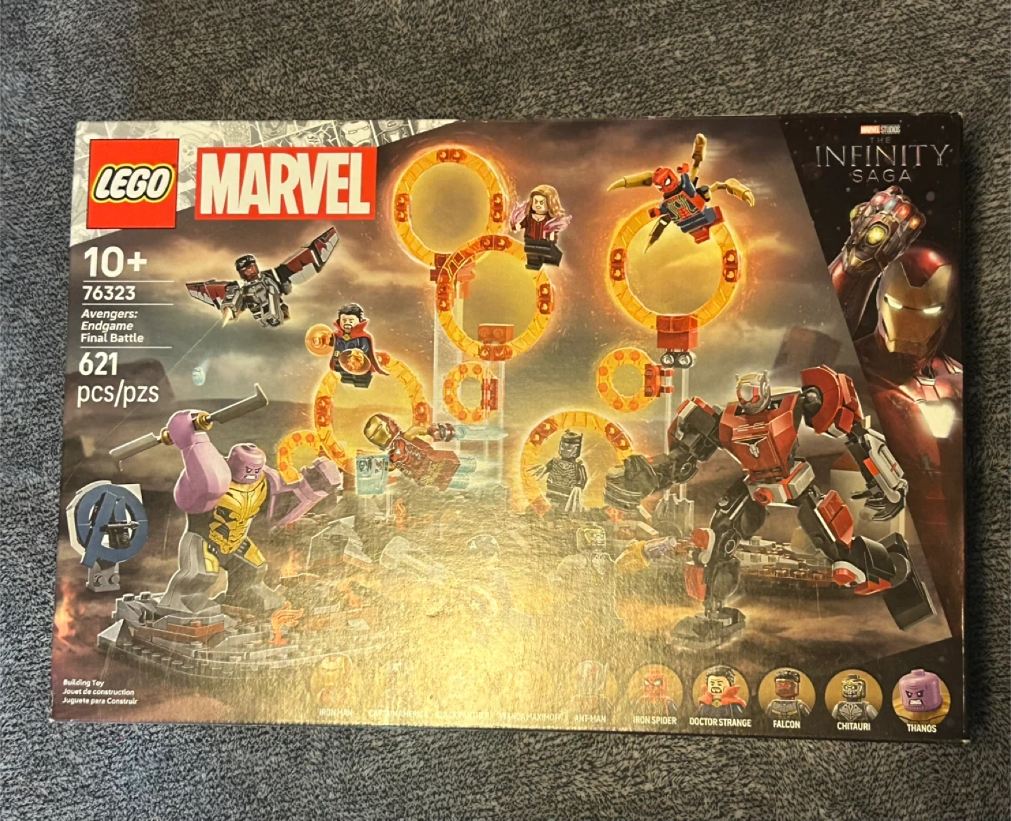 Selling a LEGO Marvel Avengers: Endgame Final Battle set (76323)! This set is perfect for Marvel fans and LEGO builders alike. It includes 621 pieces to recreate the epic battle from the Infinity Saga. Bring the action home with this awesome set!