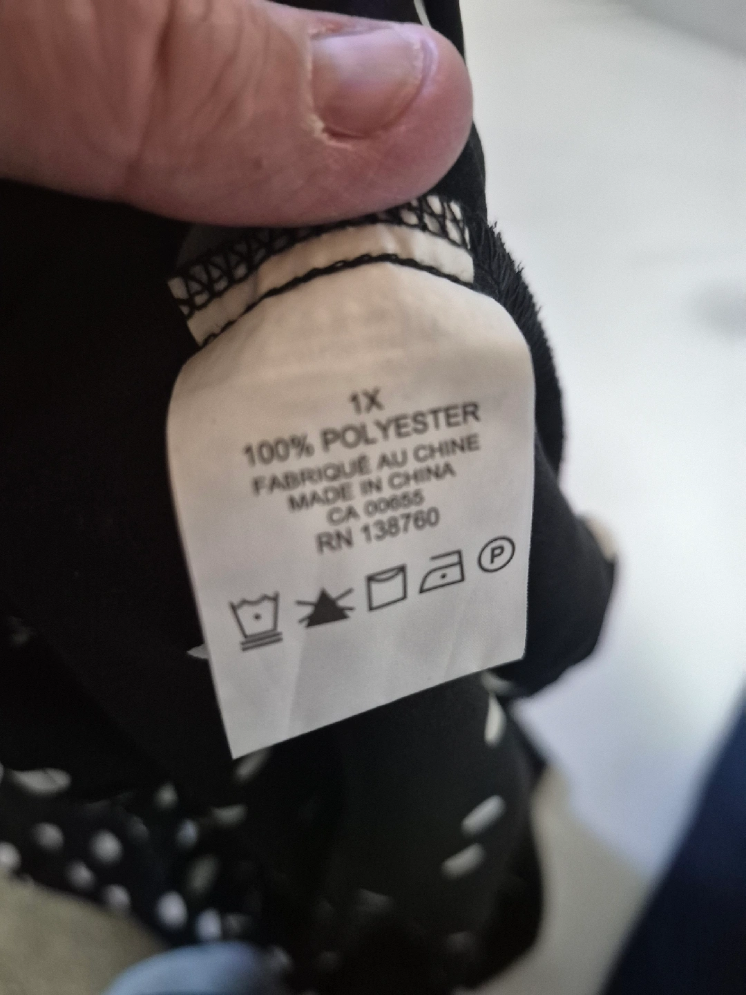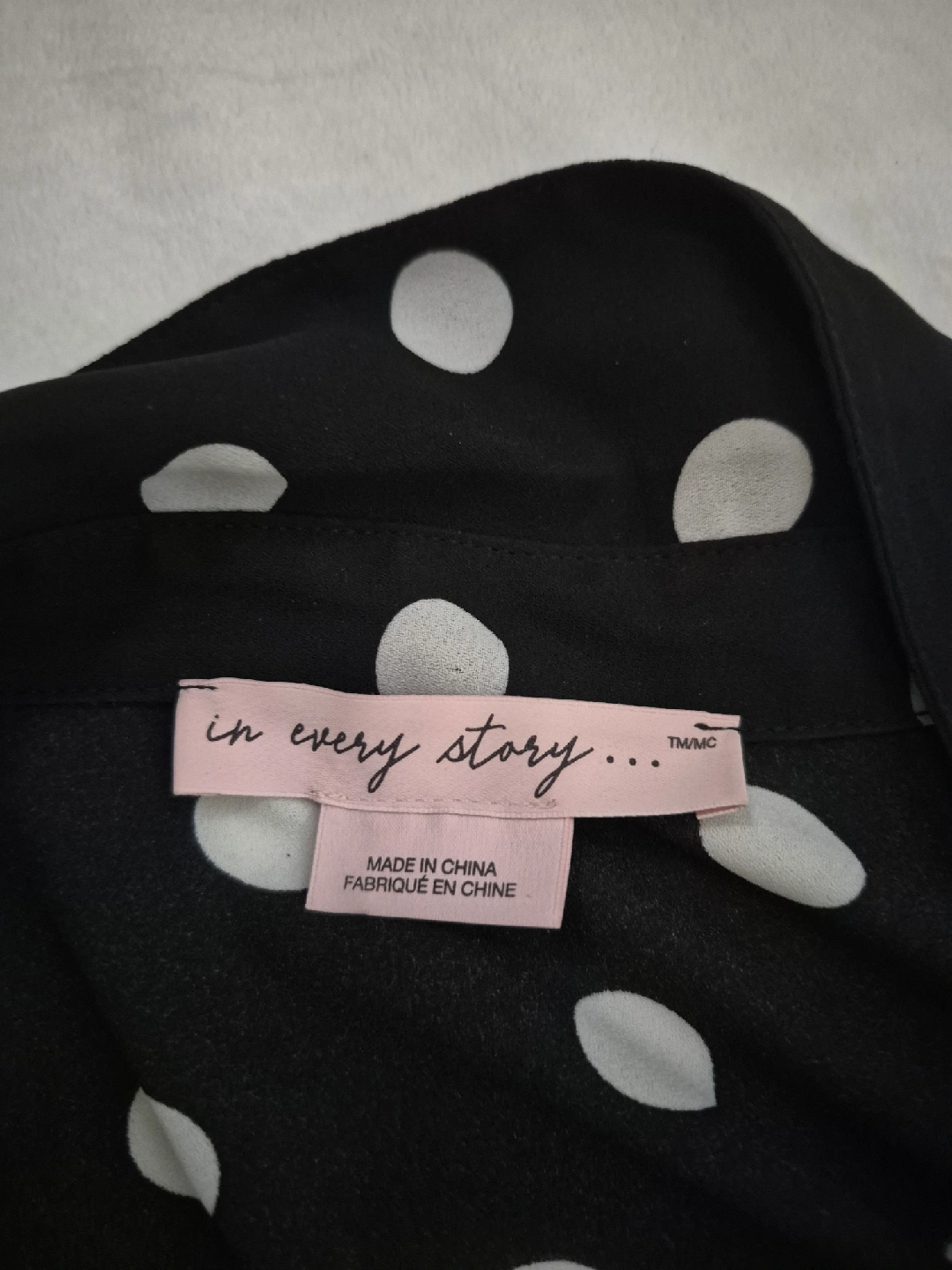 Selling a cute black blouse with white polka dots from In Every Story! It's a size 1X and made of 100% polyester, so it's lightweight and comfy