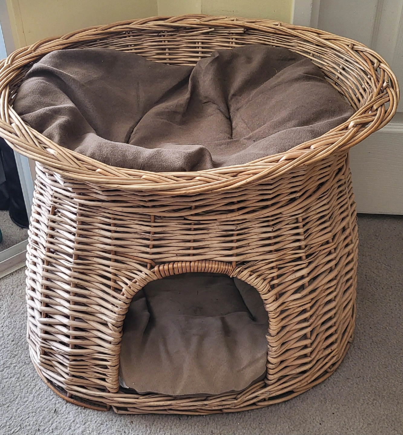 Looking to give your furry friend a cozy stylish retreat? This wicker cat bed cave is perfect! It comes with a soft taupe cushion on top and one inside for extra comfort. The classic natural wicker design is perfect with any decor. Your cat will love curling up in this cute and comfy hideaway.