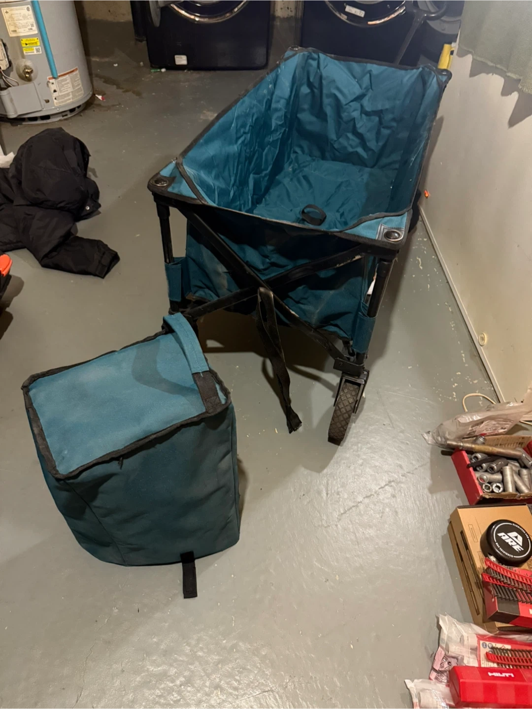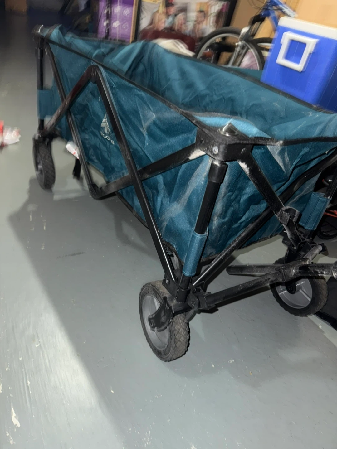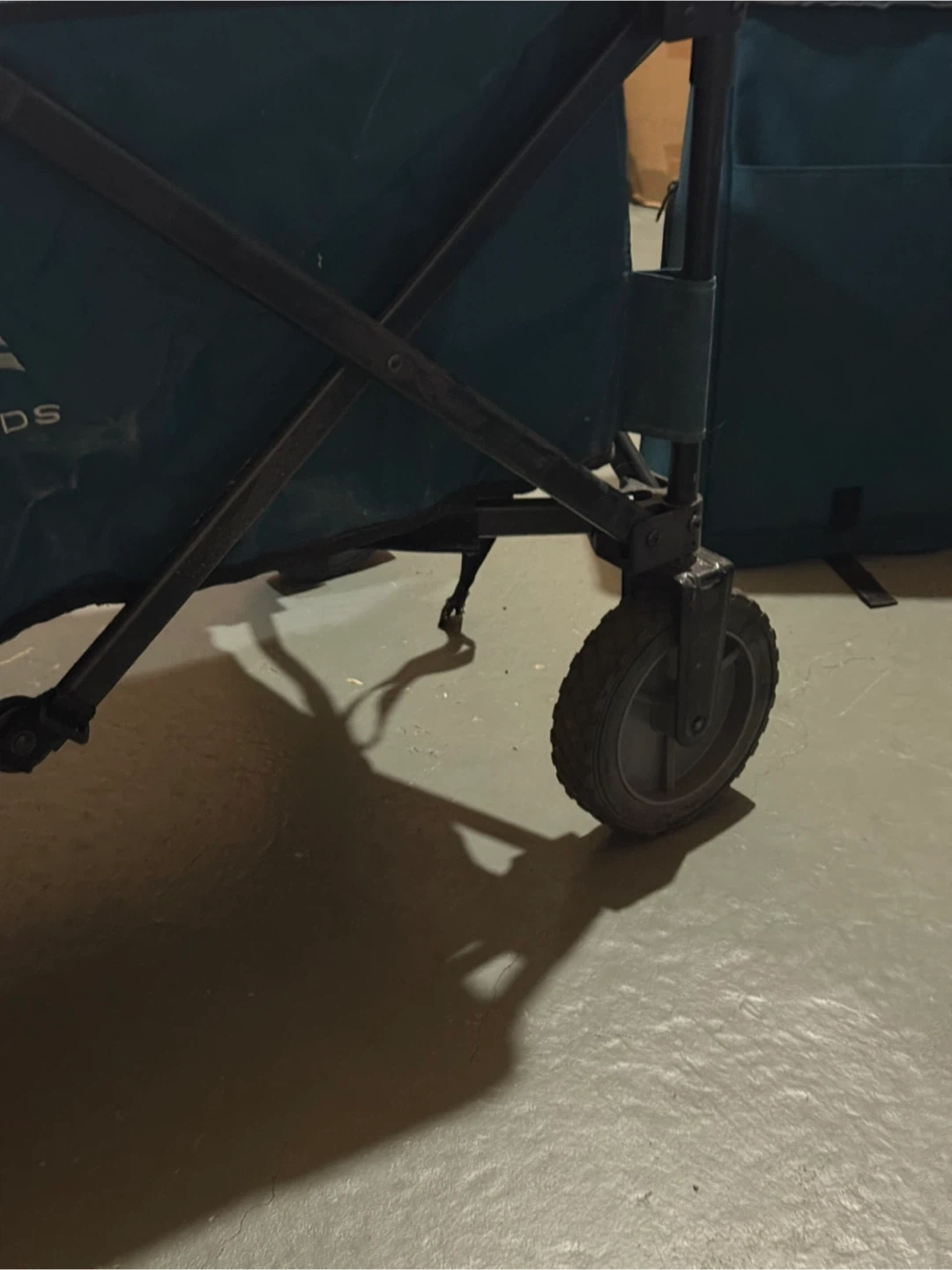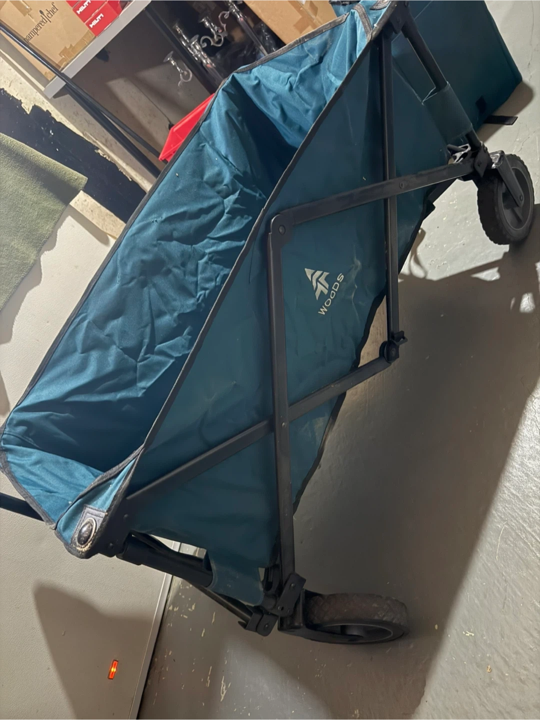 This is a Woods Utility Wagon that's ready for all your hauling needs! This wagon has been used but is still in good working condition and includes a convenient carrying case. It's perfect for camping trips, gardening, or just moving stuff around the yard.