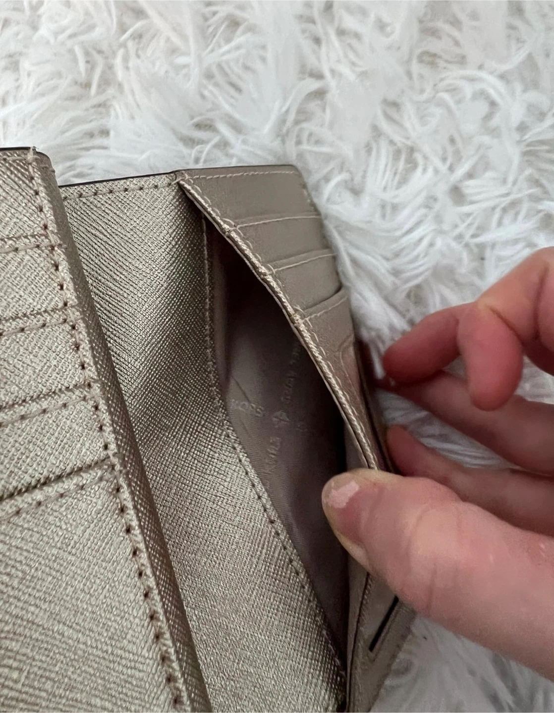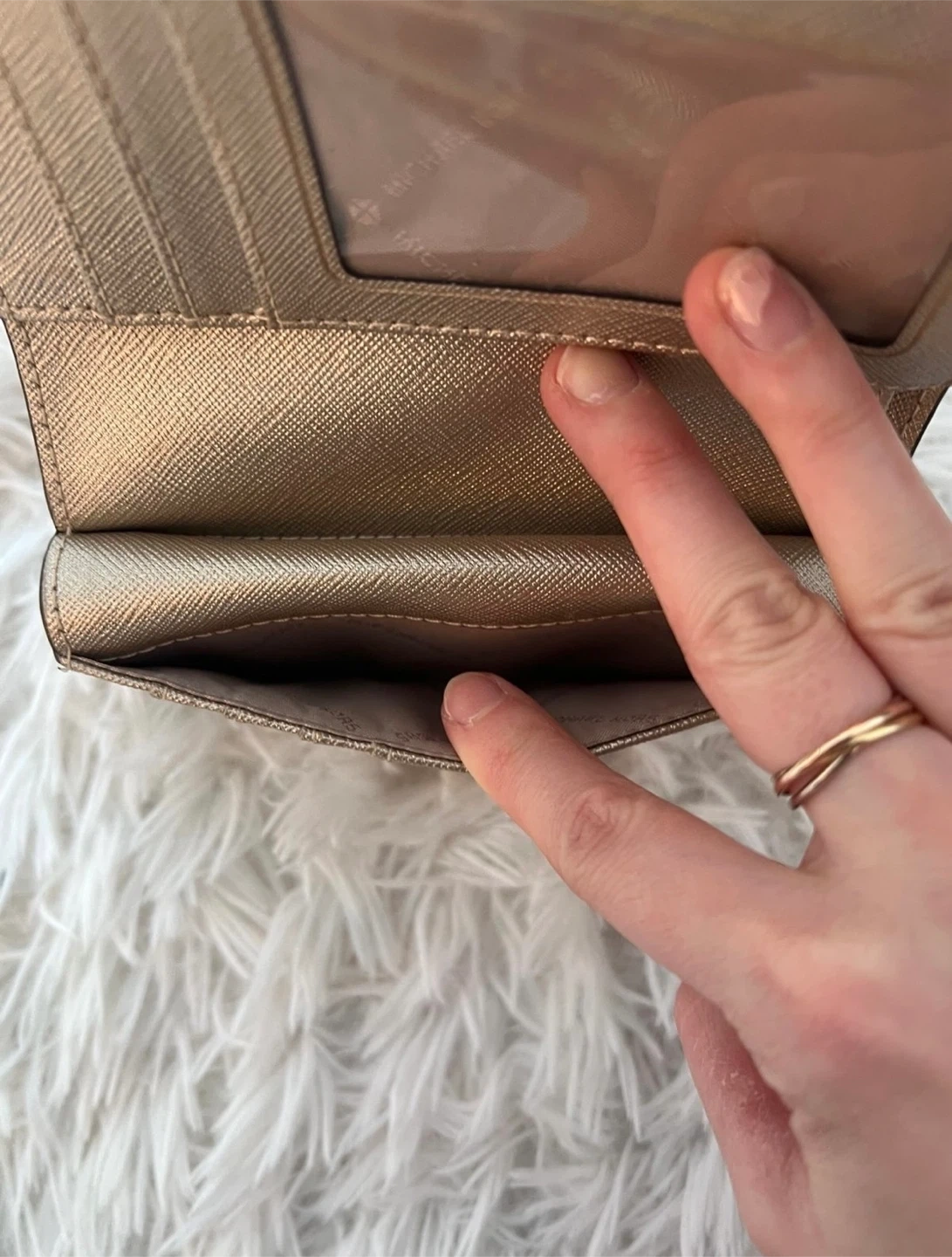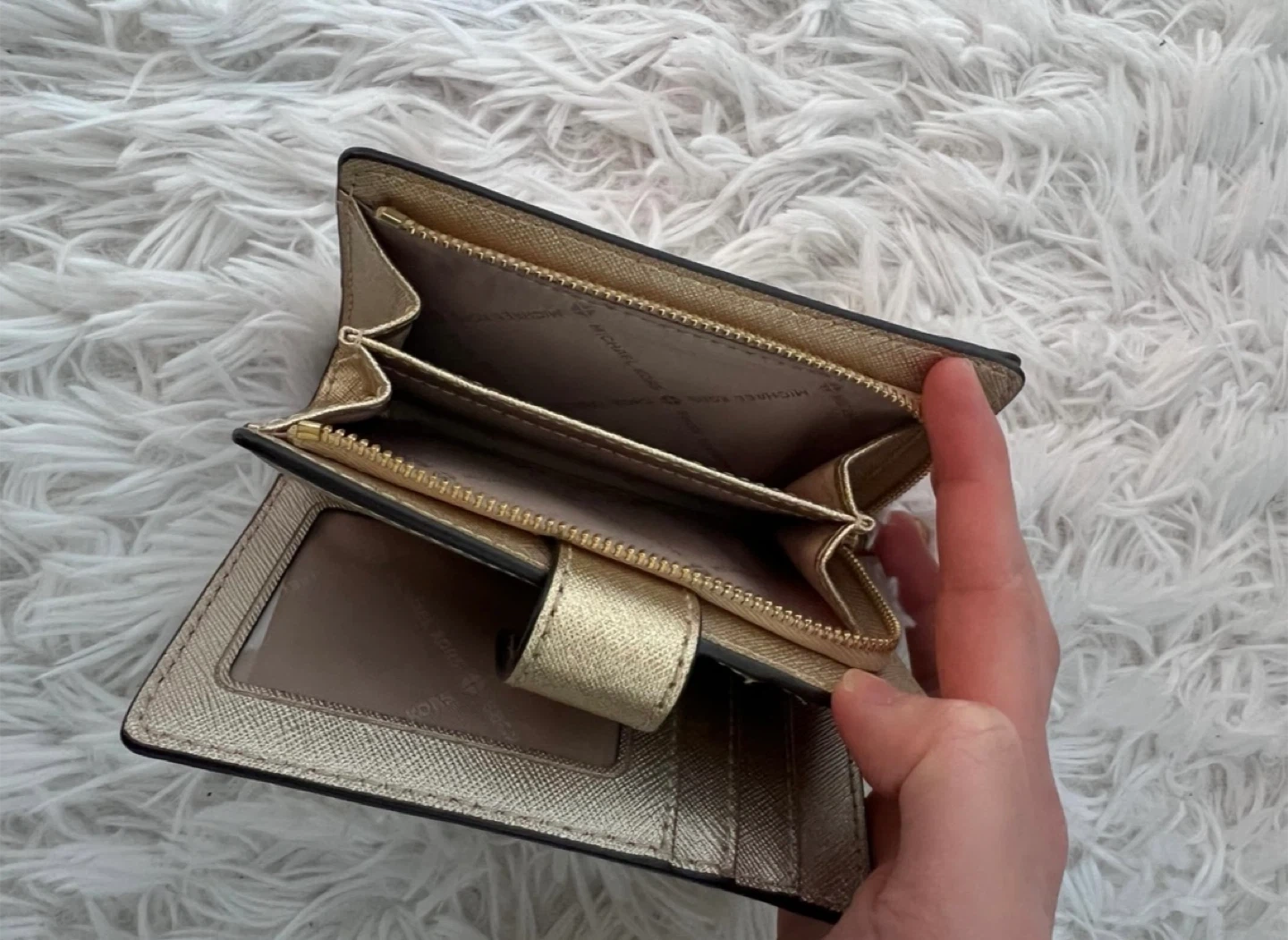 Selling a gold Michael Kors wallet. It's in great condition and has plenty of space for cards and cash!