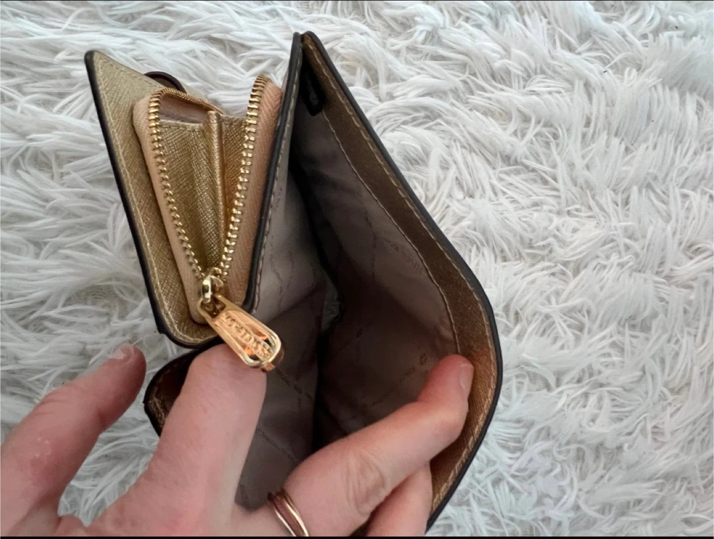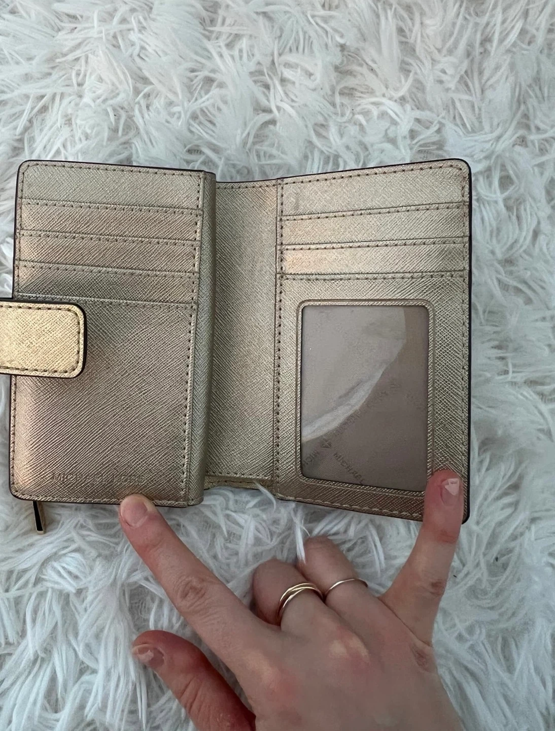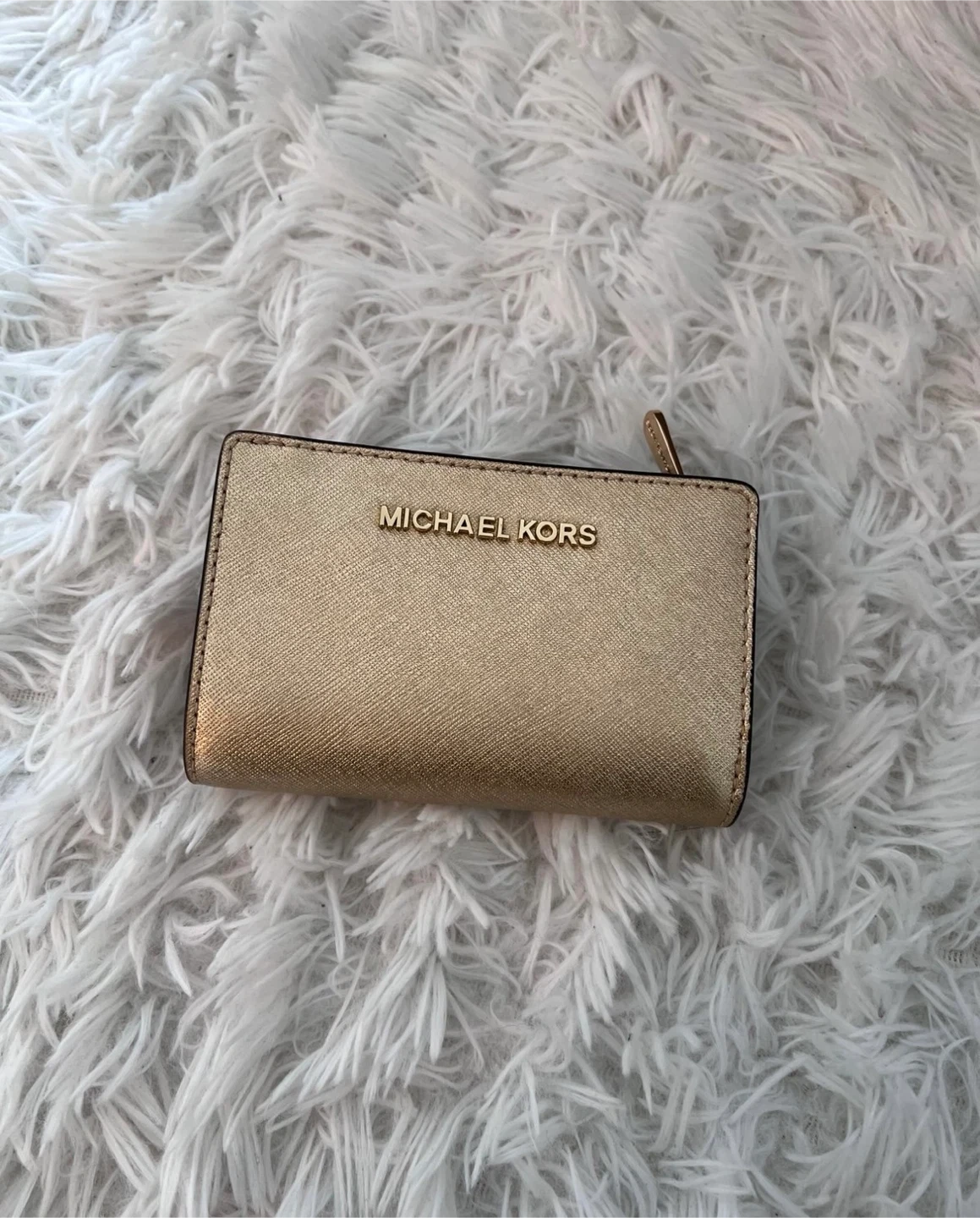 Selling a gold Michael Kors wallet. It's in great condition and has plenty of space for cards and cash!