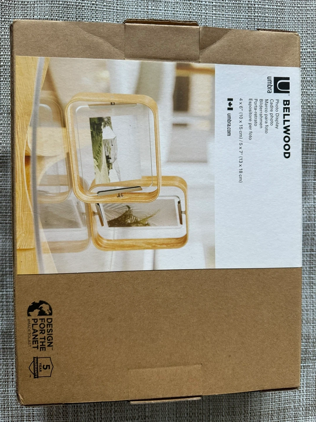 Selling an Umbra Bellwood photo display. It holds 4x6 inch photos (10 x 15 cm) or 5x7 (13 x 18 cm) photos. It is new in box