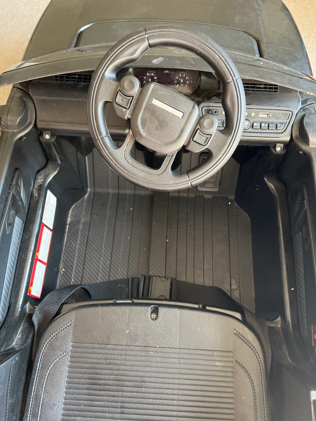 73Selling a Land Rover Discovery ride-on car for kids. It's in good condition and ready for a new little driver! Perfect for outdoor adventures and imaginative play. It has a steering wheel and seat.