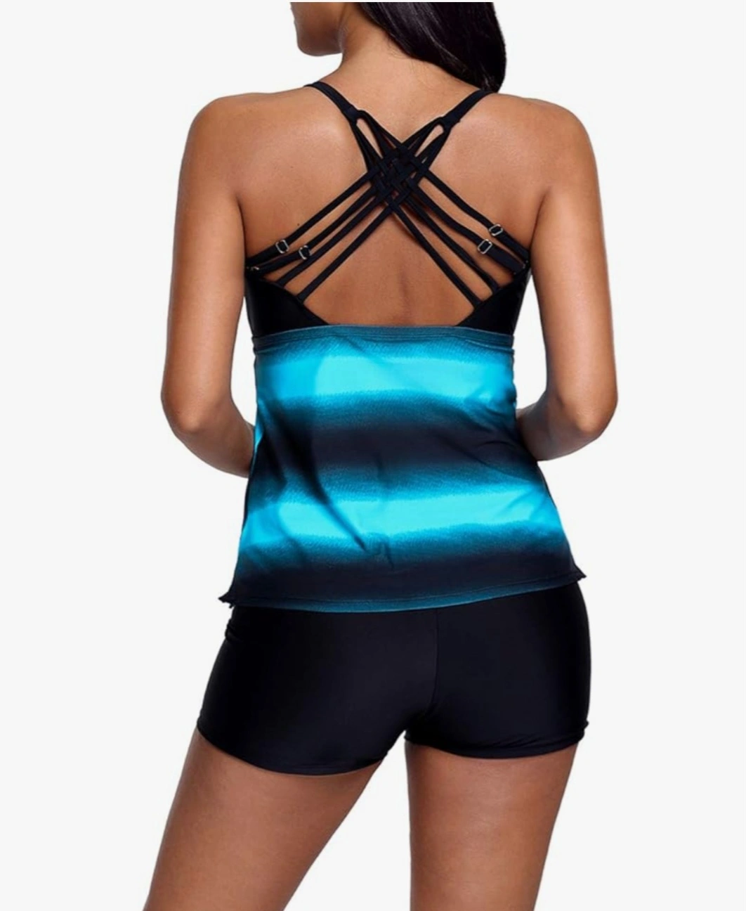 It's a size medium and features a stylish blue and black gradient design. Perfect for the pool or beach!