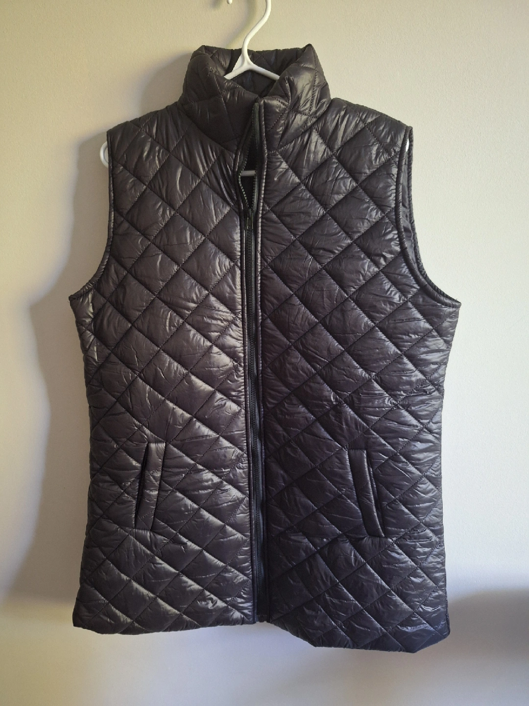 Here's a quilted puffer vest in a neutral colour! It's in brand new and ready to keep you warm on chilly days