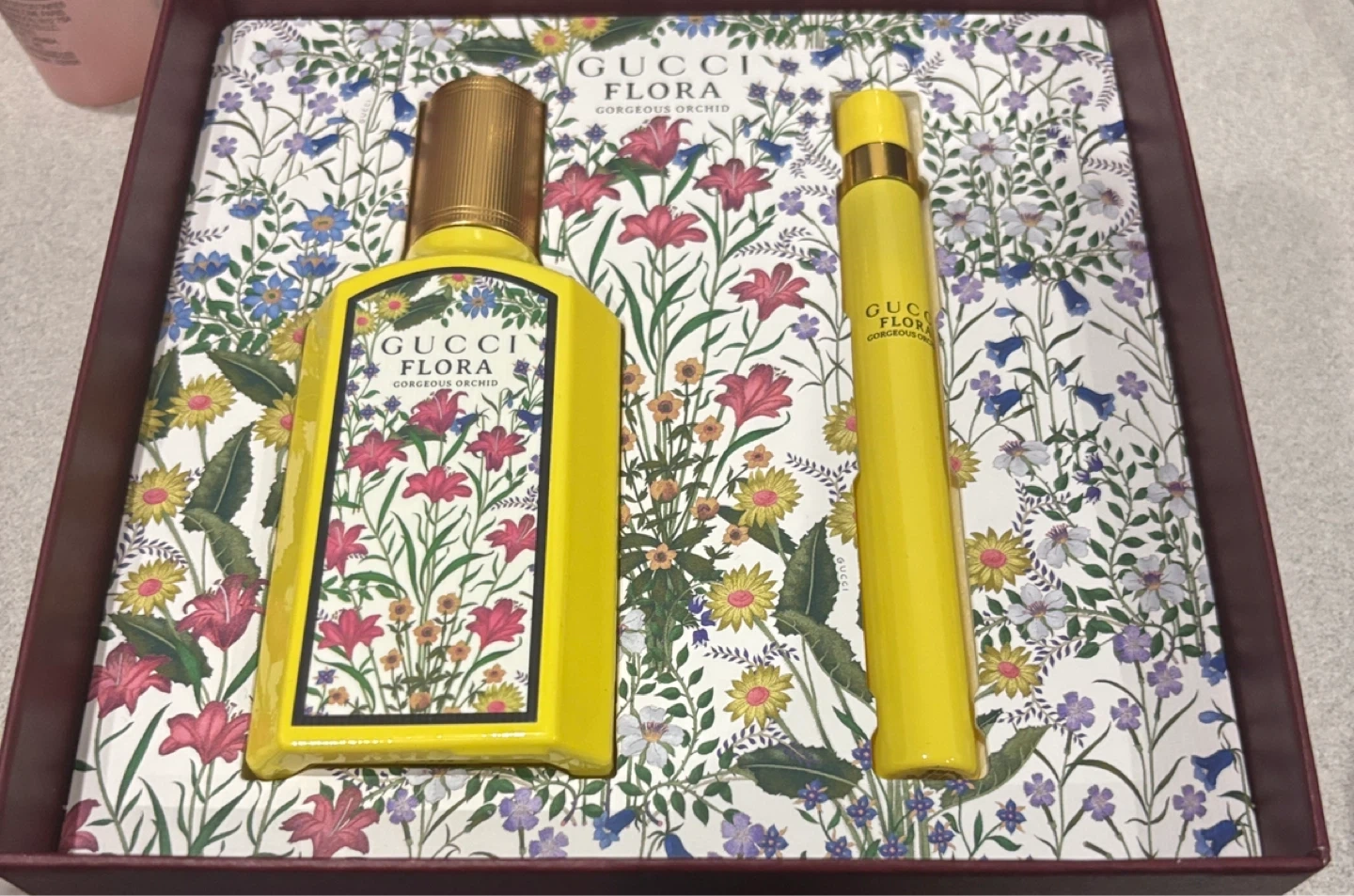 Selling a Gucci Flora Gorgeous Orchid perfume set! It comes with the perfume and a travel-size spray. Perfect for everyday wear or a special occasion. The set comes in its original box