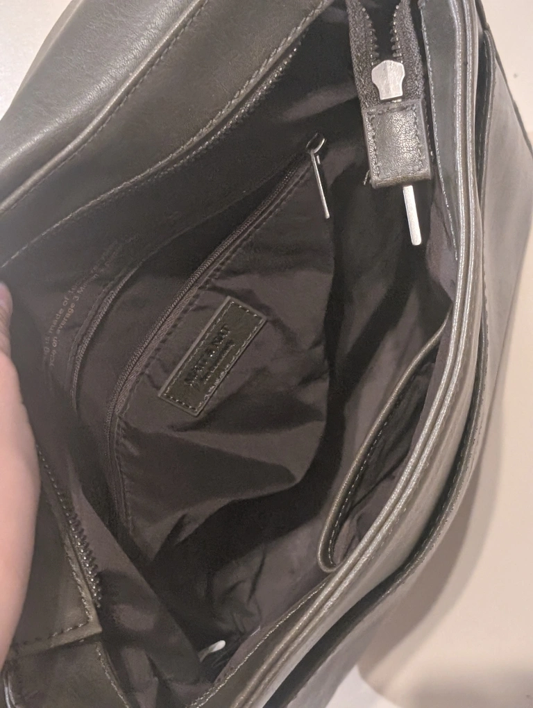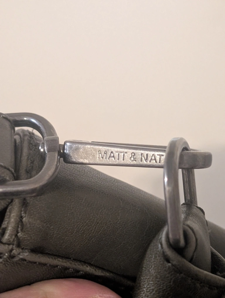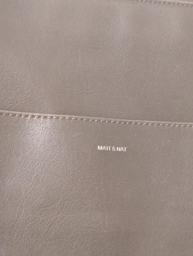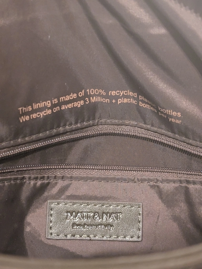 Matt & Nat crossbody bag. It's a stylish and practical bag in a nice olive green colour. The lining is made of 100% recycled plastic bottles, which is pretty neat! has two interchangeable straps
