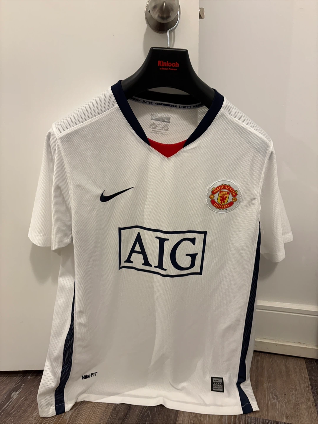 Selling a Nike Manchester United jersey. It features the AIG sponsor logo on the front. The jersey is white and red. There is also a Nike swoosh on the upper left side. Check out the photos!35 each
