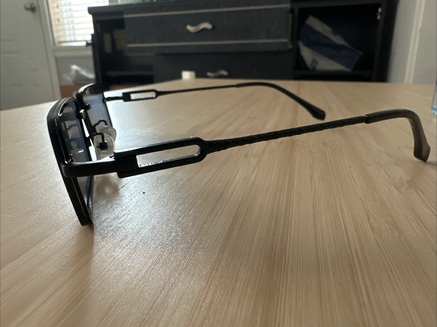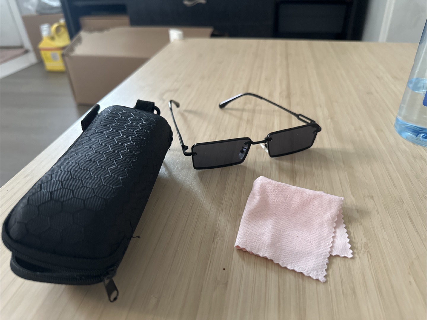 Selling a pair of black rectangle frame sunglasses! They come with a protective case and a cleaning cloth to keep them in tip-top shape. Perfect for adding a bit of style to your everyday look