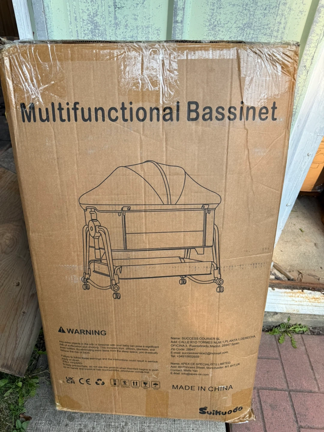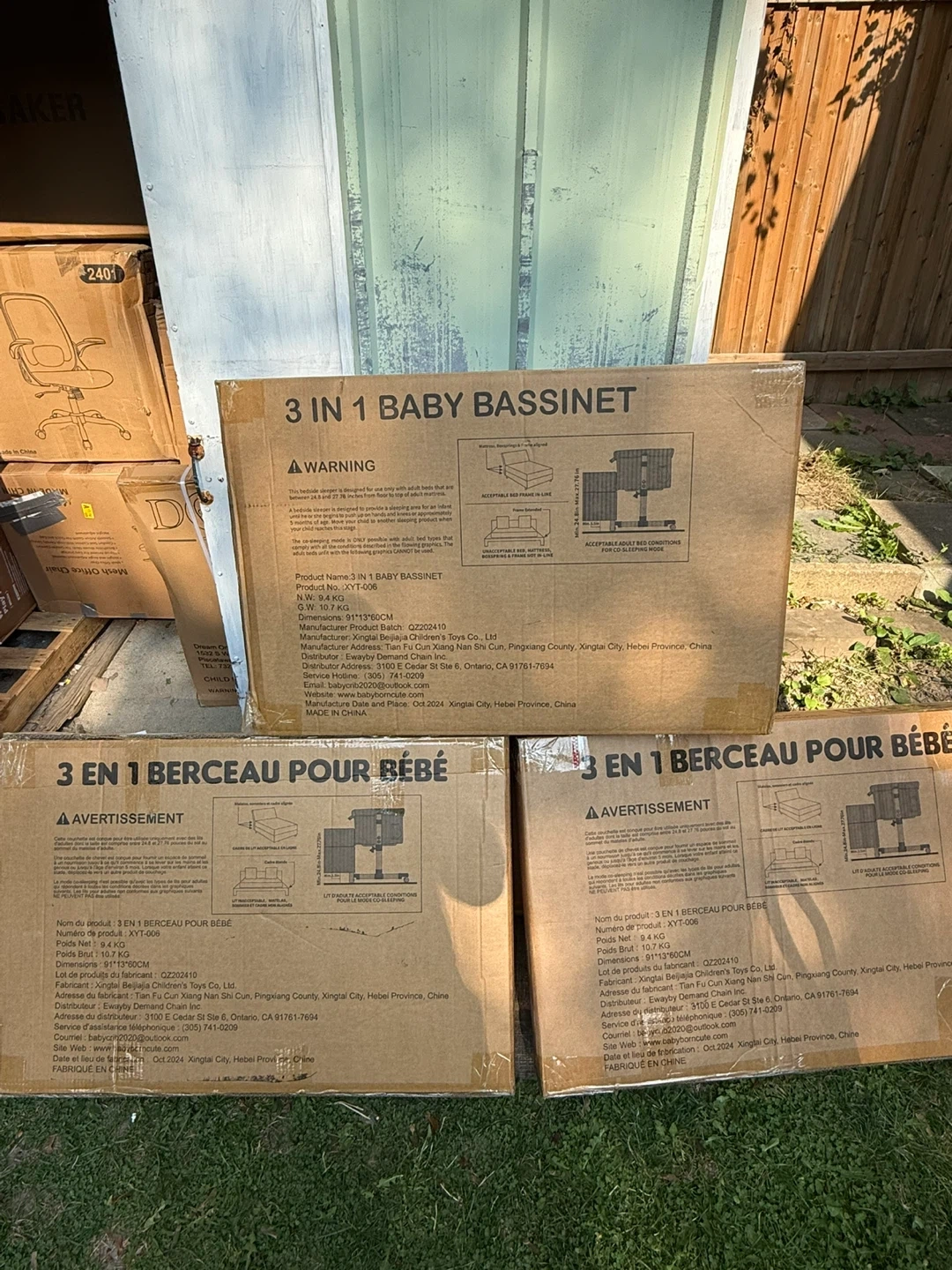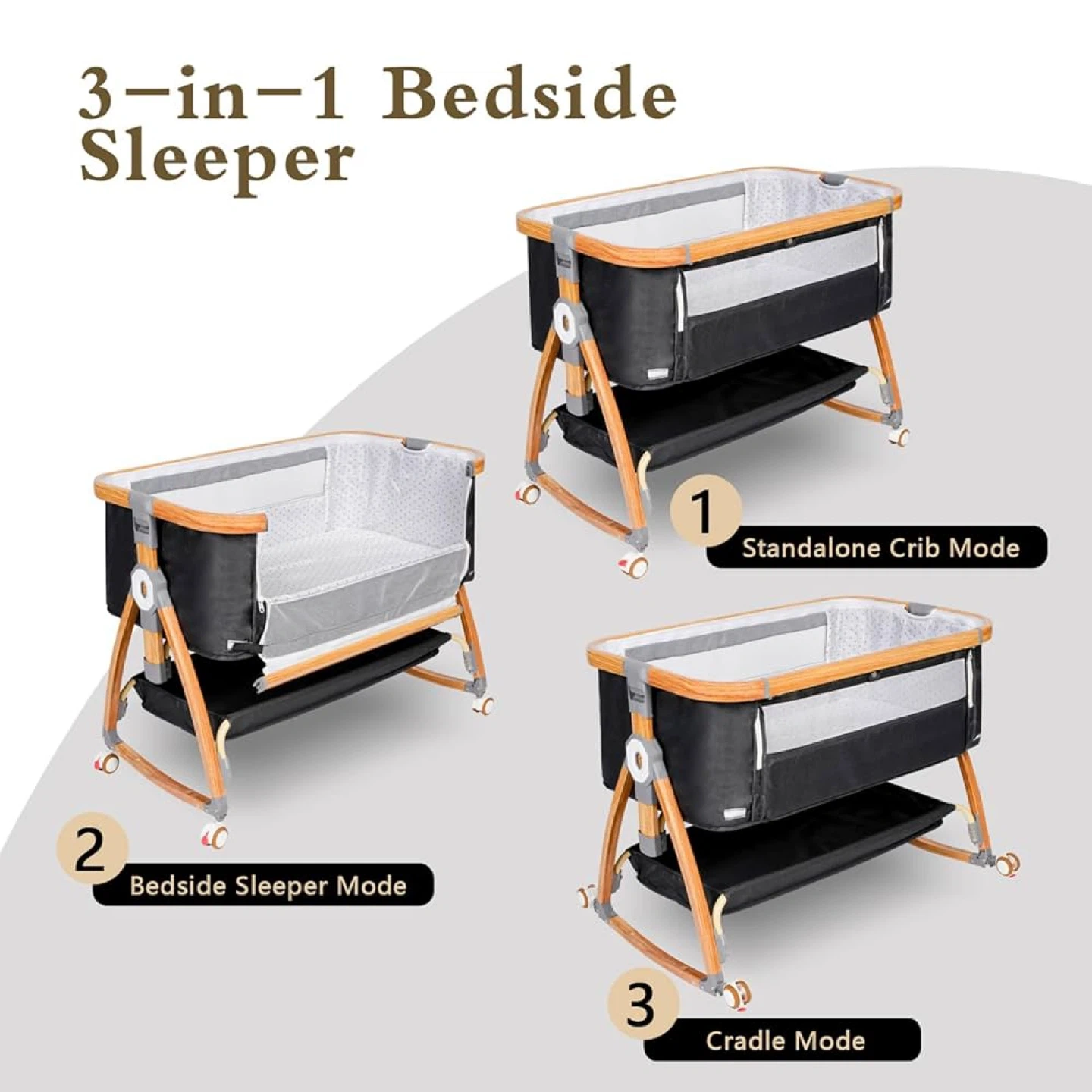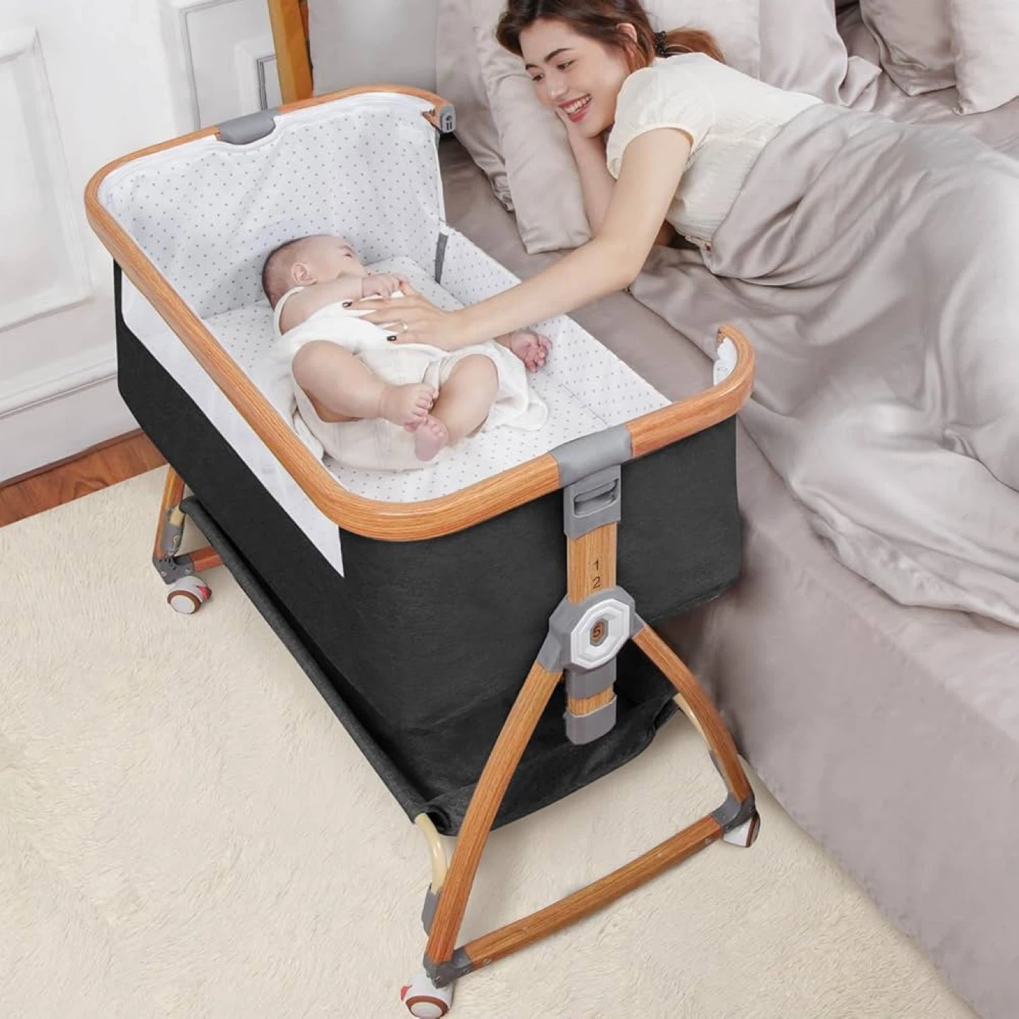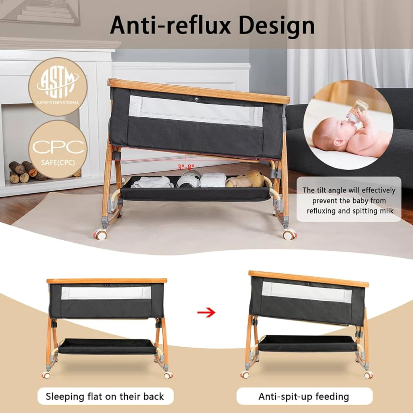 This 3-in-1 bedside sleeper is perfect for your little one! It features an anti-reflux design to help prevent spitting up. Key features: - 6 adjustable height positions - 360° wheels with brakes for easy movement - Can be used as a standalone crib, bedside sleeper, or cradle Have more than 5models all sealed