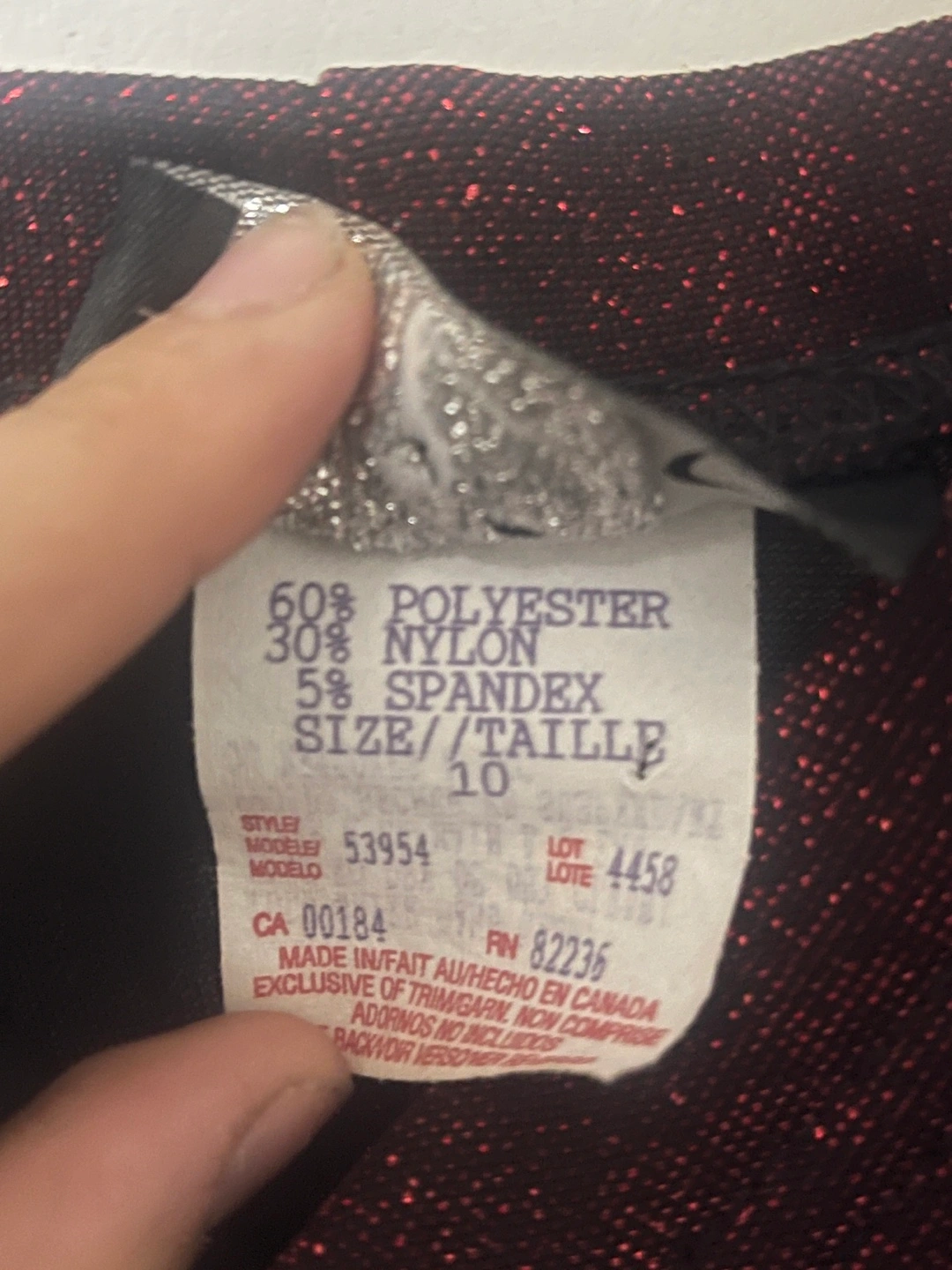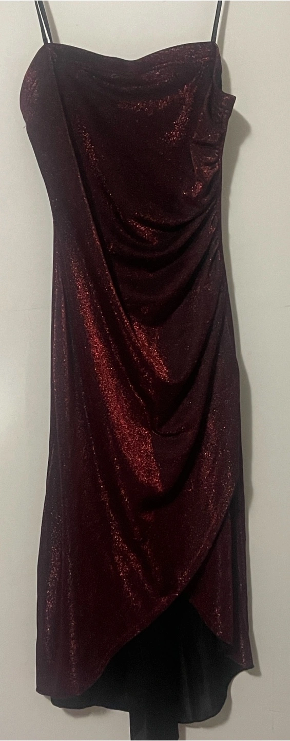 Selling a beautiful burgundy sparkly dress in size 10! The material is 60% polyester, 30% nylon, and 5% spandex. It's in great condition and perfect for a night out or special occasion