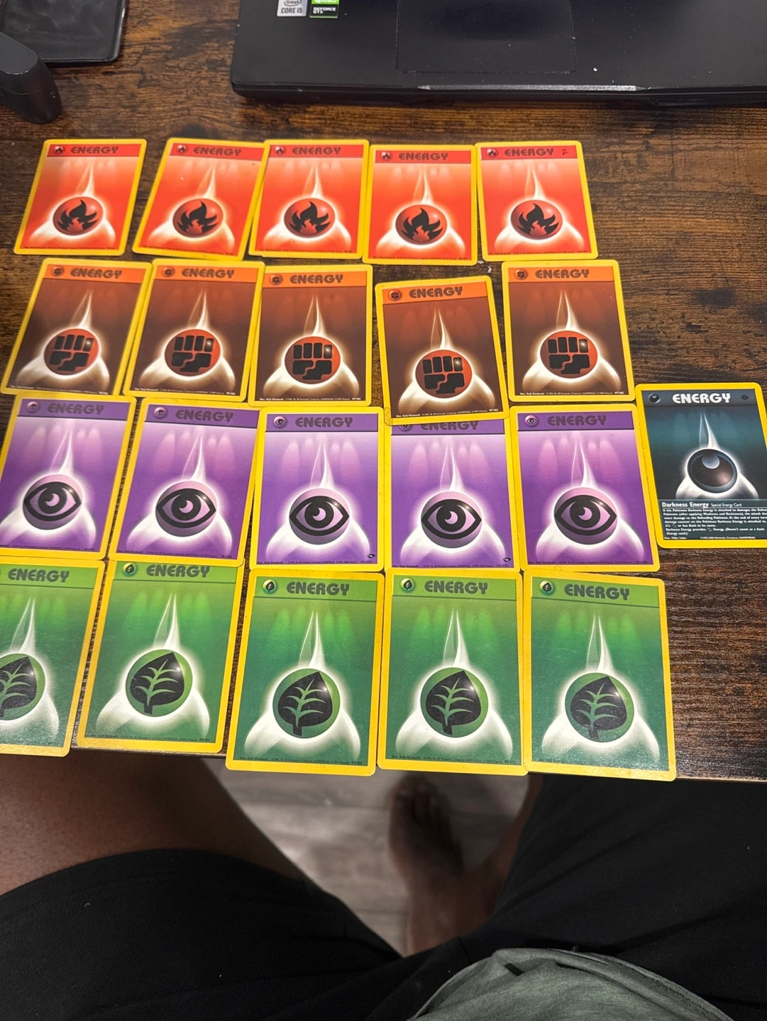 78Selling a lot of various Pokémon energy cards! Includes fire, fighting, psychic, grass, and darkness energy types. Perfect for building your deck or expanding your collection
