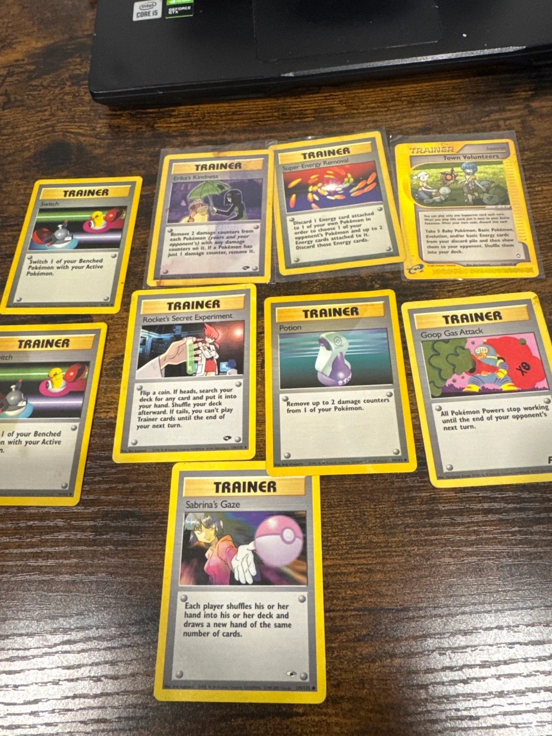 68Selling a collection of Pokemon Trainer cards. Includes Switch, Erika's Kindness, Super Energy Removal, Town Volunteers, Rocket's Secret Experiment, Potion, Goop Gas Attack, and Sabrina's Gaze