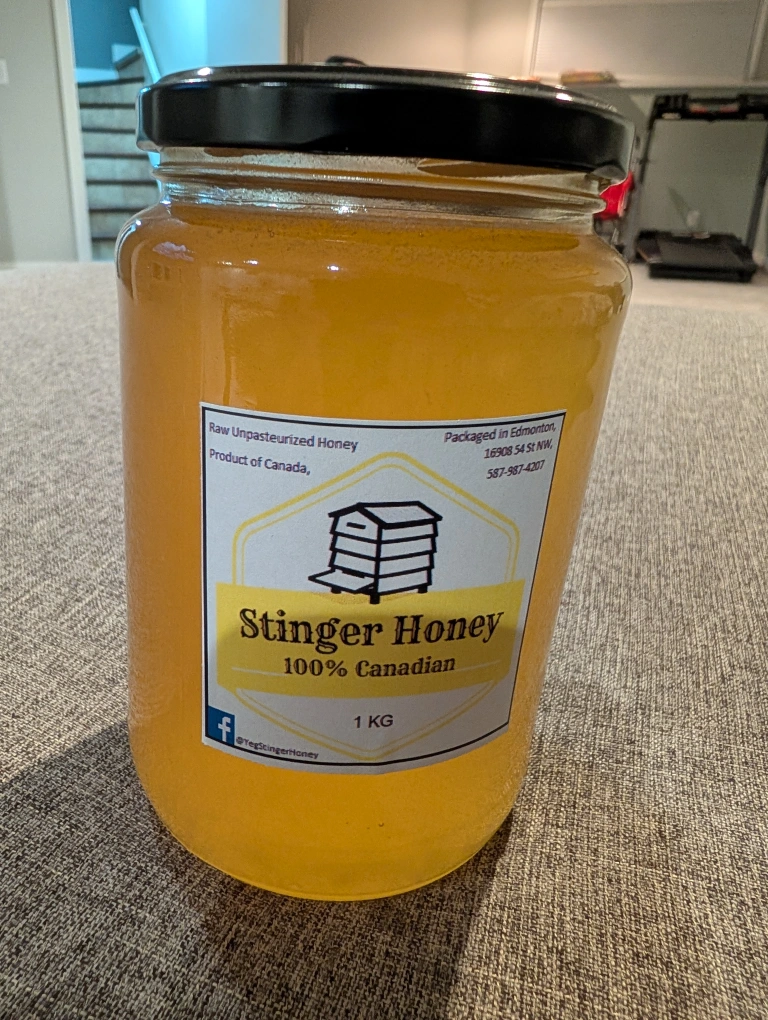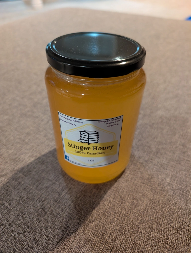 Selling a jar of Stinger Honey, 100% Canadian. It's raw, unpasteurized, and comes in a 1 KG jar. A great addition to your pantry!