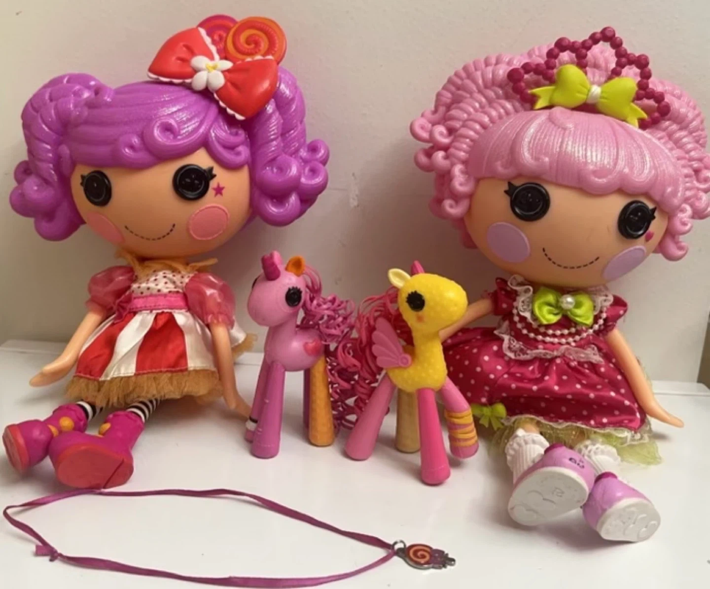 **Retired toys, will Not sell Separately** Lalaloopsy Dolls Peanut & Jewel Sparkles with their ponies Macadamia & Hazelnut, plus a bonus collector’s necklace. Pickup from smoke free home near Morningstar Drive (Mississauga) & Humberwood Blvd (Toronto) in Malton. Willing to meet at 4369 Brandon Gate Dr, Mississauga with enough notice. {CASH ONLY, no e-transfers please} **Check out my other listings & follow me for more items.** X Posted