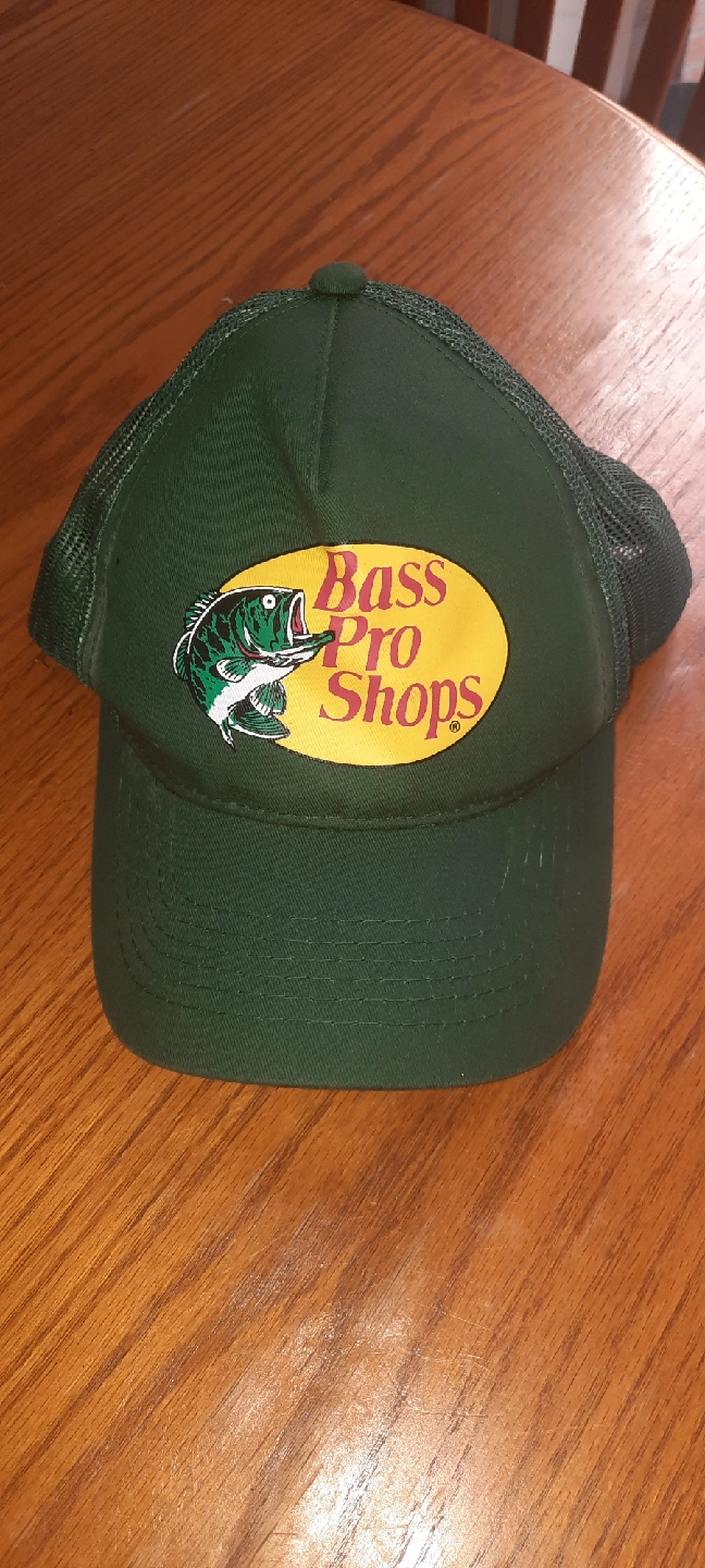 Selling a green Bass Pro Shops trucker hat. It's in great condition and ready for a new owner. Perfect for fishing or just everyday wear!