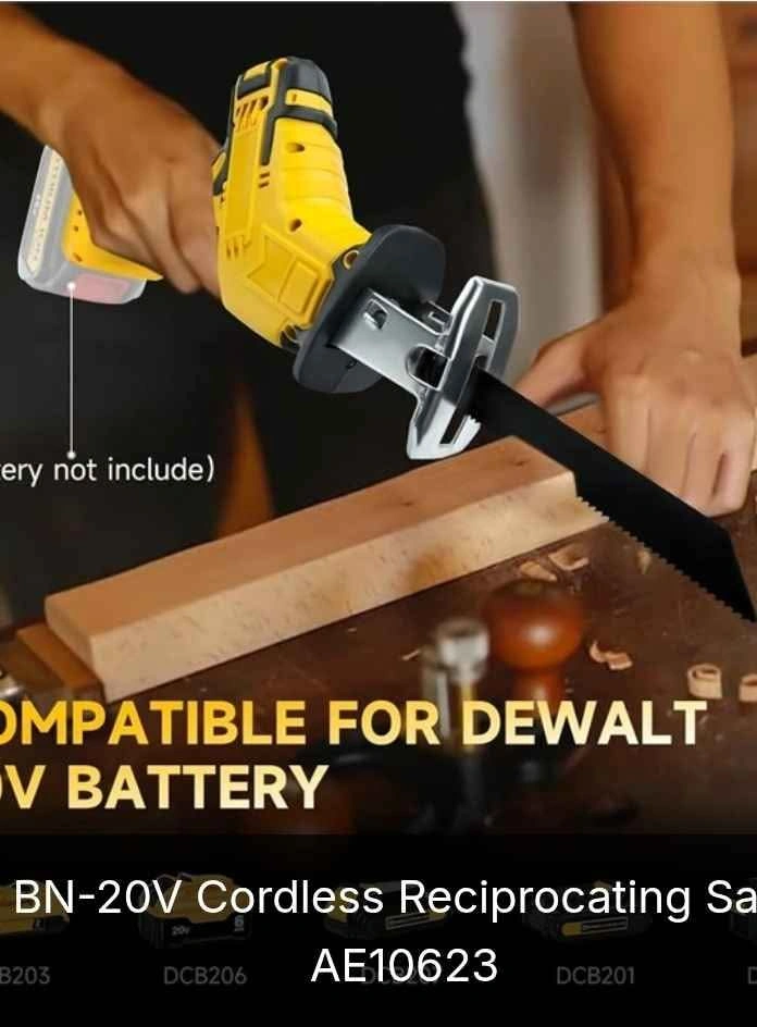 This cordless reciprocating saw is designed for compatibility with DeWalt 20V MAX lithium-ion batteries (not included). It features a high-power motor with a 25.5 mm stroke length and variable speed control from 0 to 3000 SPM, allowing smooth cutting through wood, metal, PVC pipes, and branches. The tool-free blade change system makes switching between blades fast and safe without additional tools. Built with an ergonomic soft rubber handle, the saw weighs only 2.43 lbs, making it suitable for one-hand operation and comfortable for extended use. Additional safety features include a lock switch and built-in LED light for visibility in dark work areas.