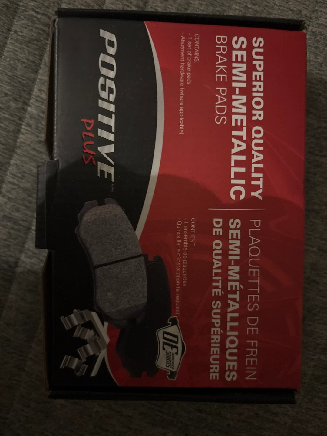 Selling a set of Positive Plus semi-metallic brake pads. They are superior quality and come with adjustment hardware where applicable. The box contains one set of brake pads