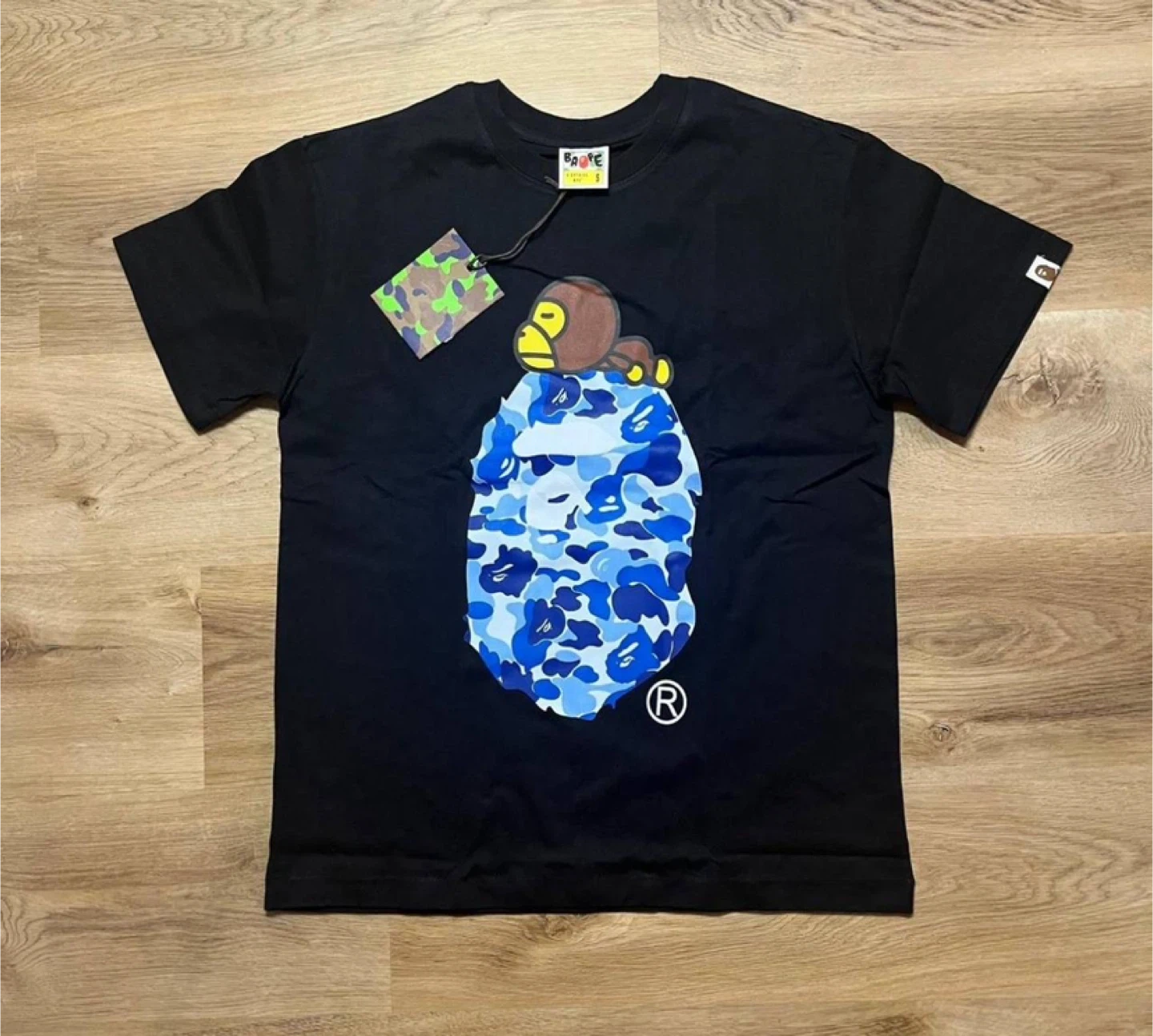 Bape Baby Milo Blue Camo Black T-Shirt Men’s – NWT