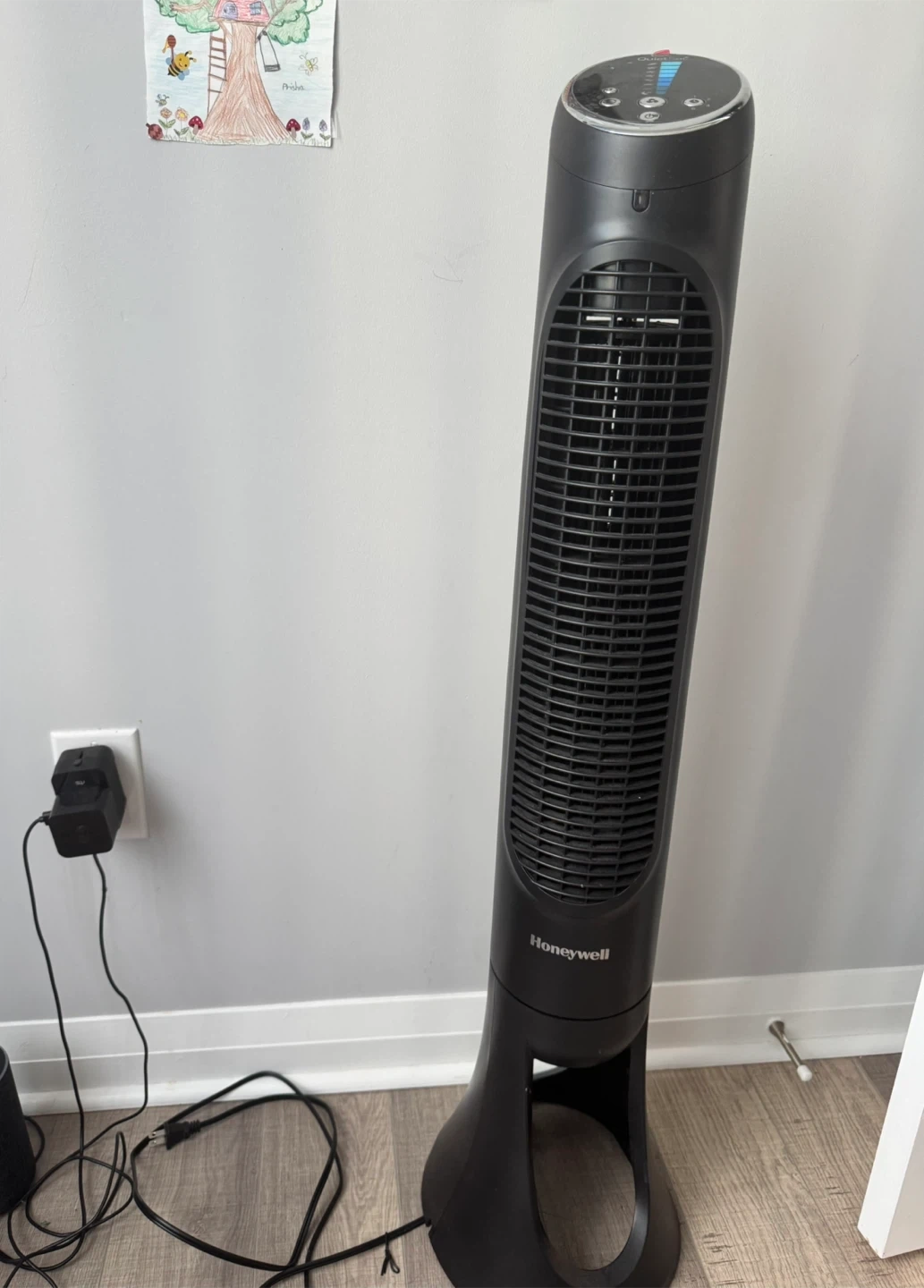 Keep cool with this Honeywell QuietSet tower fan in black! It features multiple speed settings for customized comfort and QuietSet technology for peaceful operation. Perfect for any room in your home!