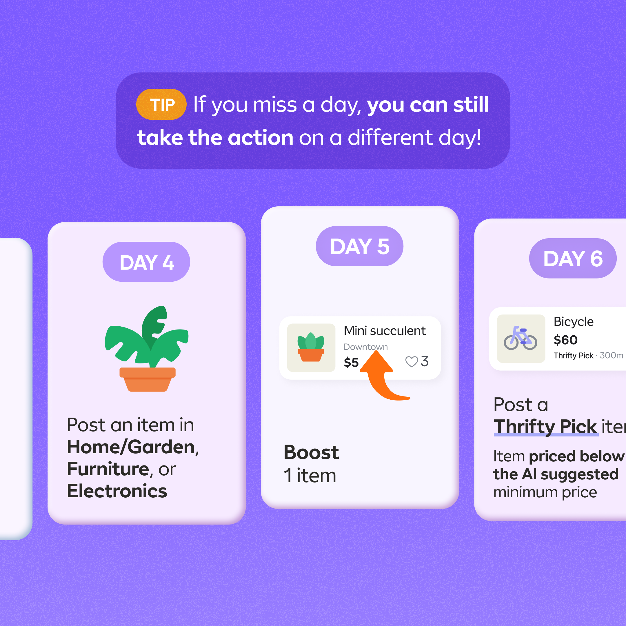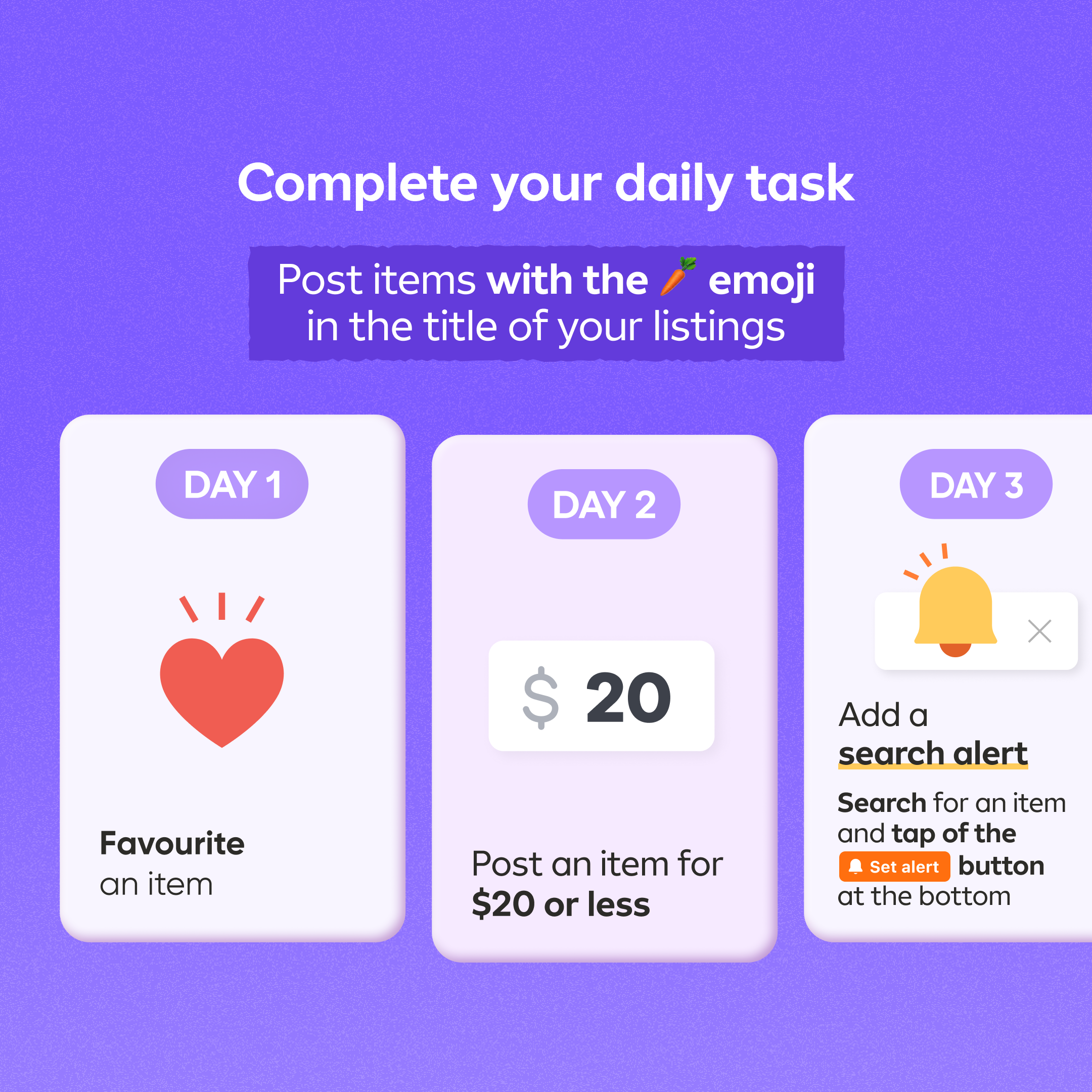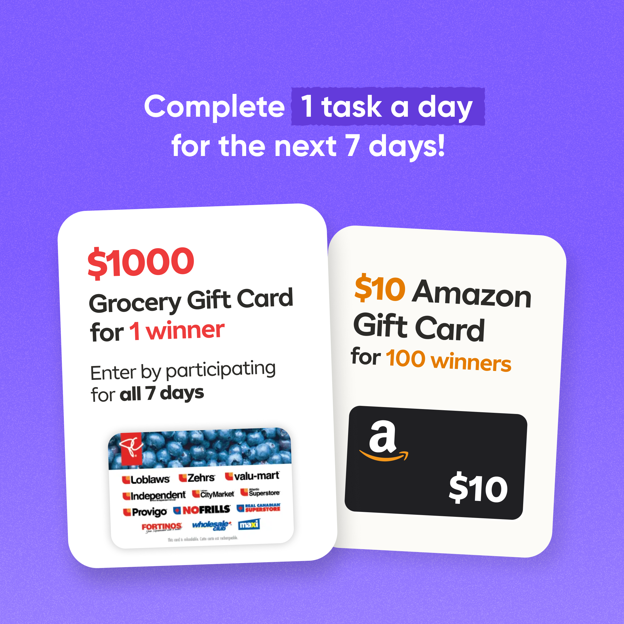 1000+Hey Karroters, Join us for our September Declutter Challenge! This week, we’re making decluttering simple and stress-free. Complete 1 task a day for 7 days for a chance to win a $1000 Grocery Gift Card! When: September 12 - 18 PRIZES: 💸 $1000 Grocery Gift Card for 1 winner - Enter by participating for all 7 days 💸 $10 Amazon Gift Card for 100 winners - Enter by participating for at least 1 of the days 🥕🥕🥕 TIP: If you miss a day you can still post on a different day! For example, if you choose to complete all 7 days on the last day you will still be counted for the draw! 🥕🥕🥕 HOW IT WORKS: **Post items with the 🥕 emoji in the title of your listings ** Day 1 - Favourite an item Day 2 - Post an item for $20 or less Day 3 - Add a search alert (TIP: search for any item and you will see a button at the bottom of the search feed that says "Set Alert") Day 4 - Post an item in the Furniture, Home/Garden, or Electronics category Day 5 - Boost an item (TIP: Go to your "Listings" section and you will find the "Boost" button by each of your listings) Day 6 - Post a "Thrifty Pick" item (priced below the AI suggested minimum price) Day 7 - Post something for free 💬 You must comment below with the days you’ve participated to confirm your entry! Winners will be announced on September 19. Terms & Conditions - Listings must include pictures of actual items and an accurate description. - Listings must follow Karrot’s guidelines and policies. - Items listed in Karrot’s Prohibited Items will be excluded. - Promotion is only available to users in Canada.