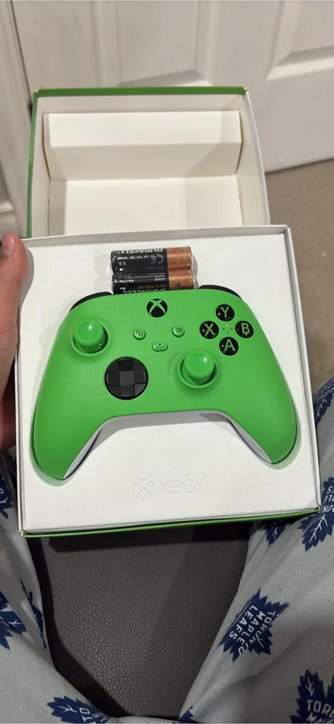 Selling a brand new Xbox Wireless Controller in the Velocity Green colour. It comes in its original box and includes batteries. The controller features textured grips for enhanced comfort and a share button to easily capture and share content. Perfect for gaming on your Xbox or PC!