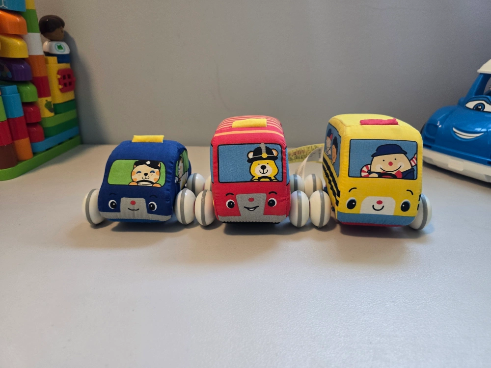 176Pick up in North York Keele St and Wilson Ave area Gently used Set of 3 ▶️ Multi Family Account - Cash only AI: Selling a set of Melissa & Doug K's Kids Pull-Back Vehicles! These soft baby toys are perfect for little hands. They're in great condition and ready for a new home! Suitable for ages 9m+