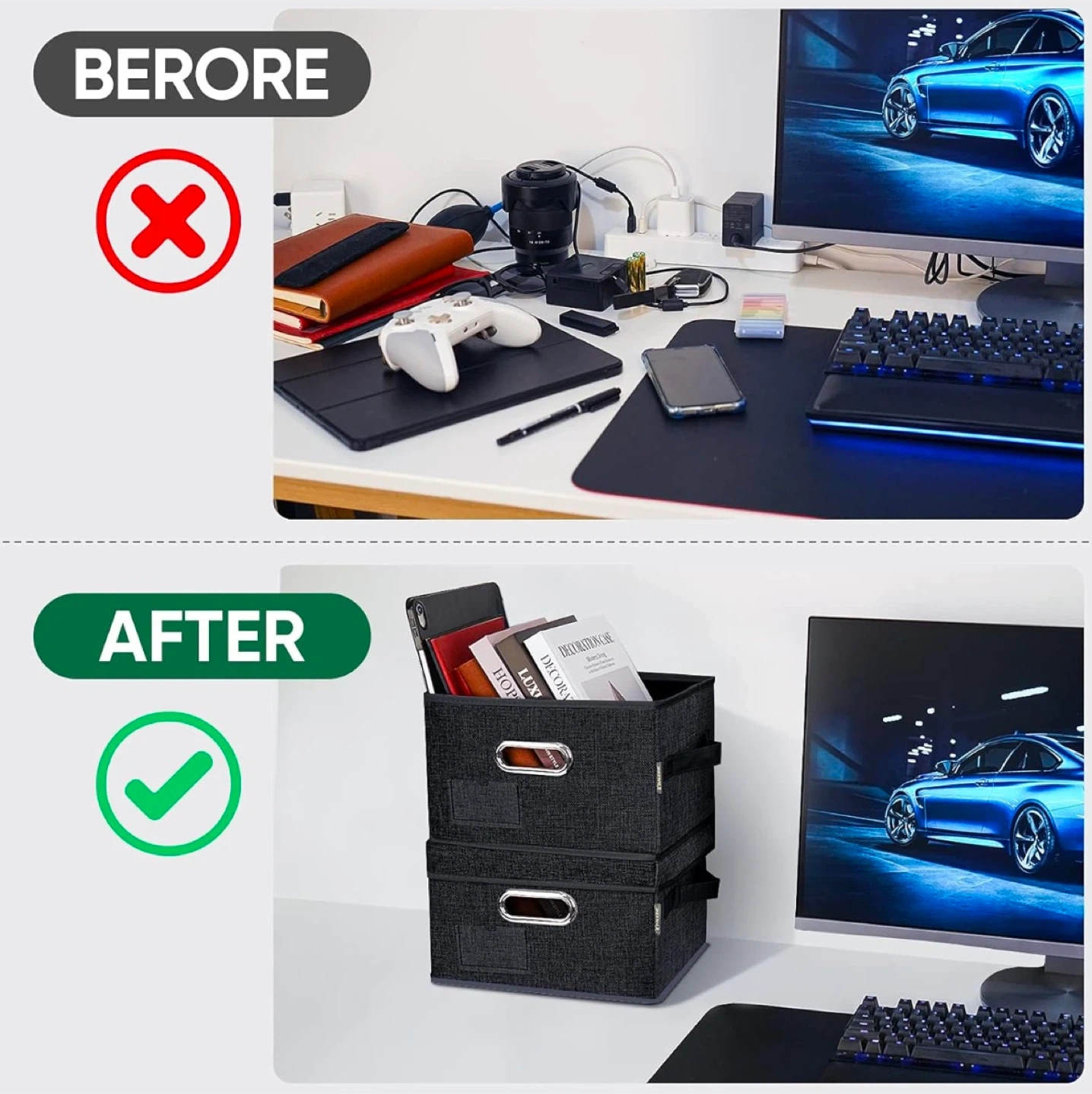 Declutter your space with these handy TOMILINE storage boxes! They're made of premium linen fabric with sturdy sewing and high-quality metal hardware. The medium size is perfect for organizing your belongings. Dimensions are 11.4 x 8.7 x 6.7 inches