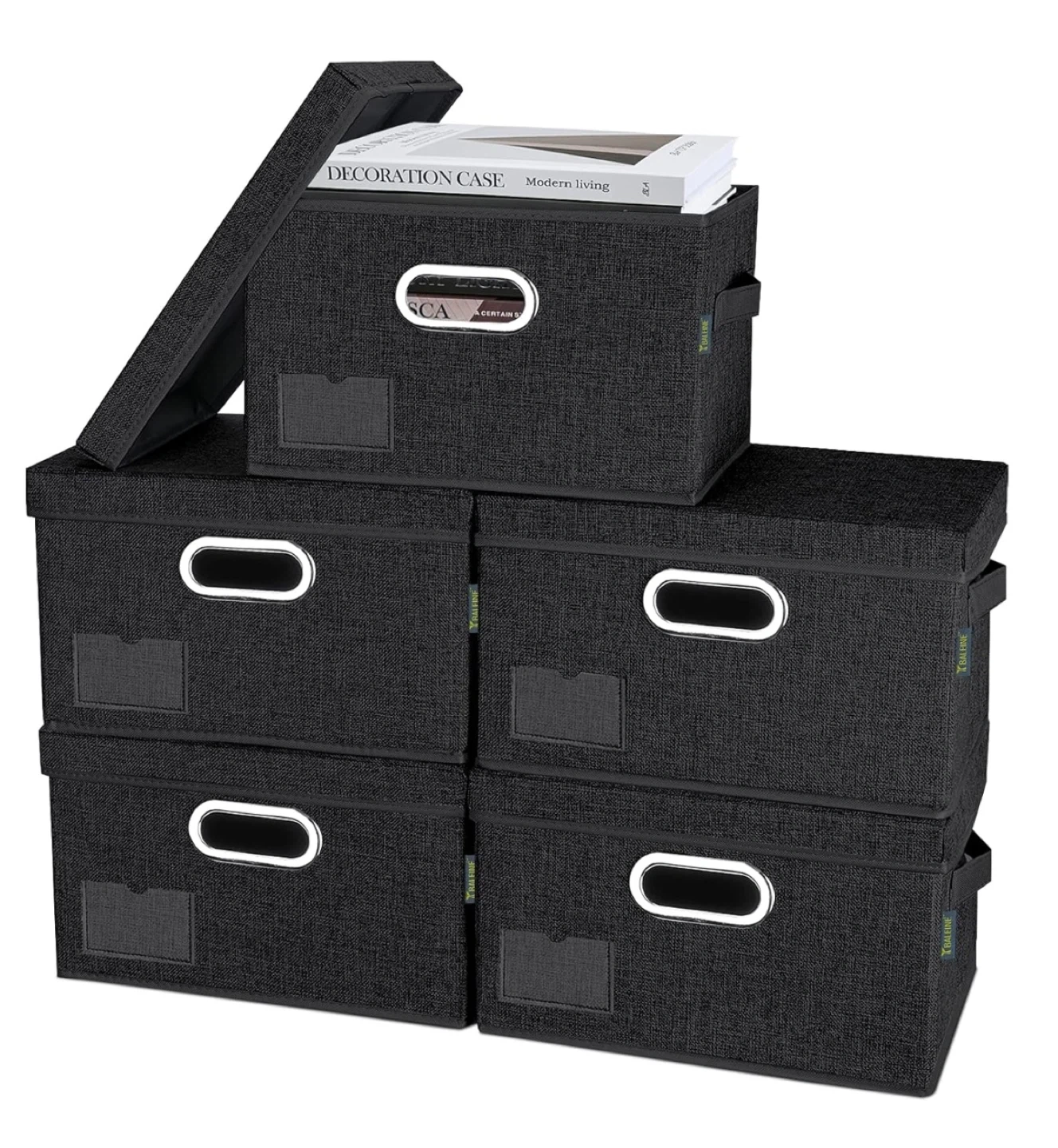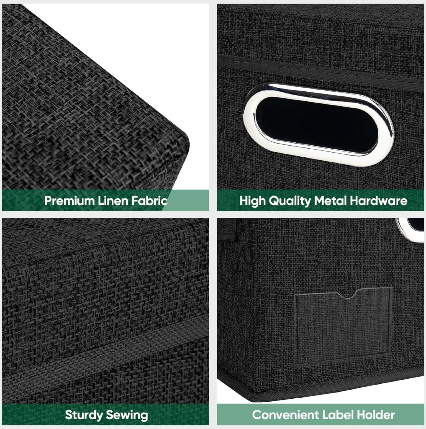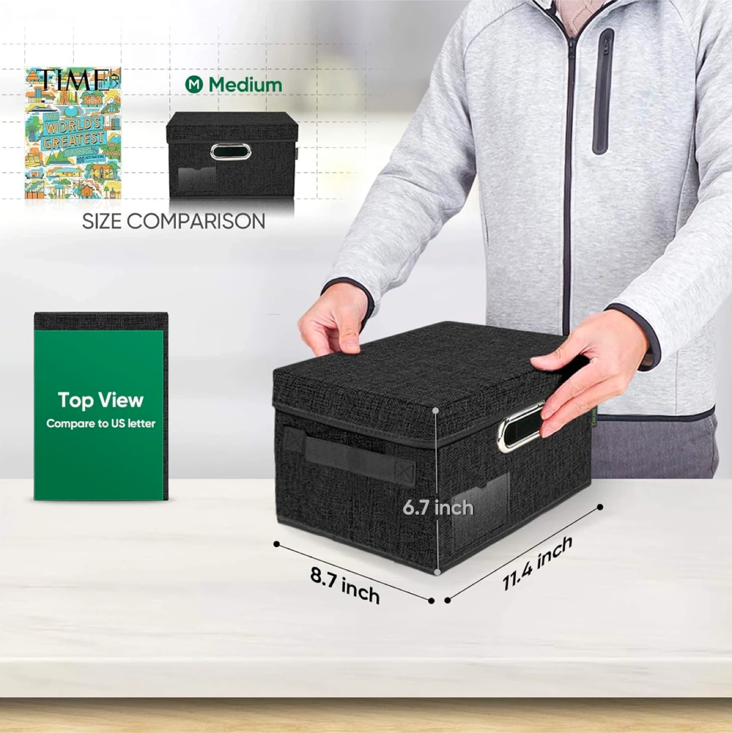 Declutter your space with these handy TOMILINE storage boxes! They're made of premium linen fabric with sturdy sewing and high-quality metal hardware. The medium size is perfect for organizing your belongings. Dimensions are 11.4 x 8.7 x 6.7 inches
