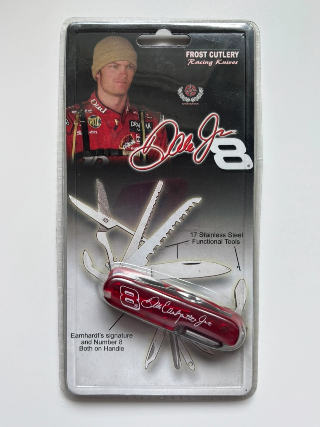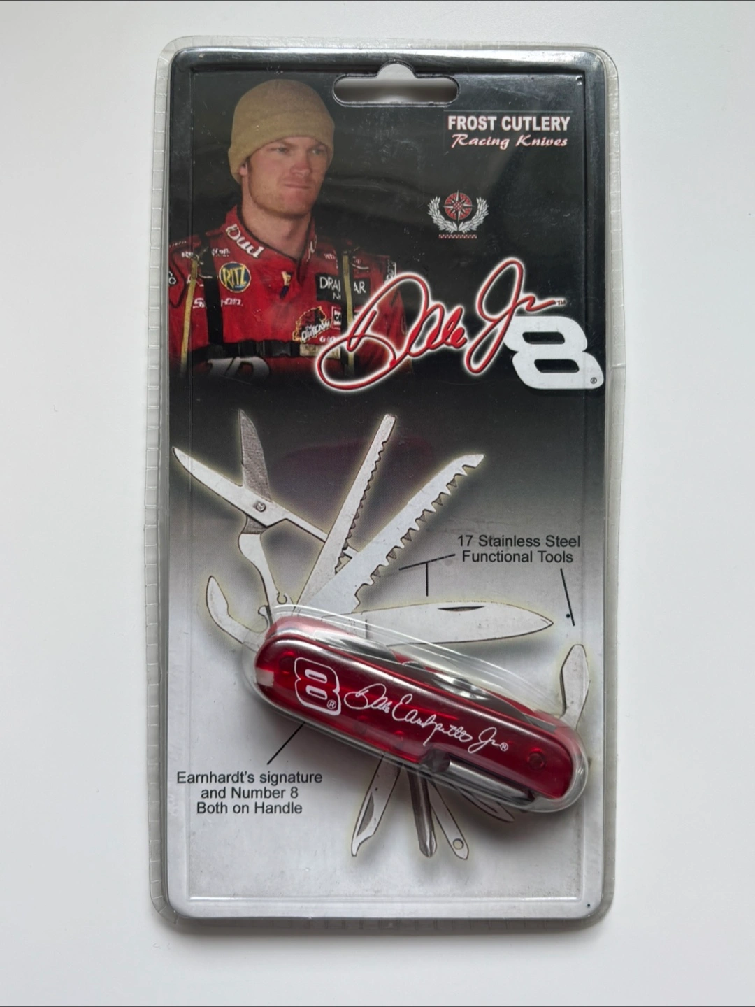 Selling a brand new Frost Cutlery Dale Earnhardt Jr. Racing Knife! It features 17 stainless steel functional tools and Earnhardt's signature and number 8 on the handle. Great for any Dale Jr. fan or collector