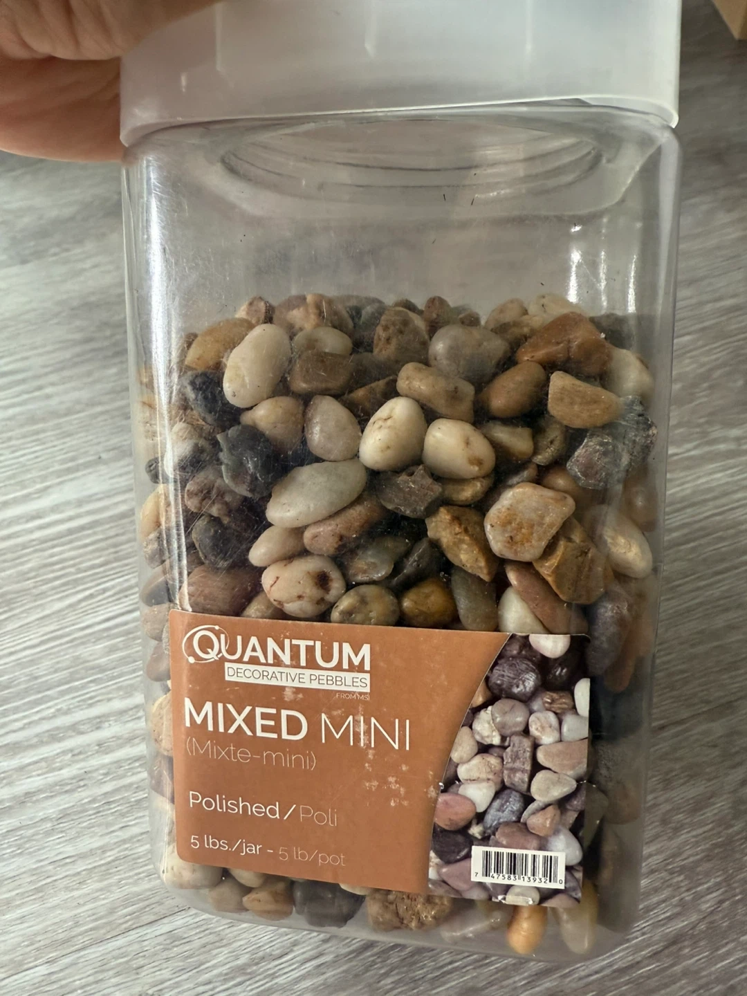 Selling a container of Quantum Decorative Pebbles. These are the Mixed Mini variety and come in a 5 lbs jar. They are polished and ready to add a nice touch to your space!