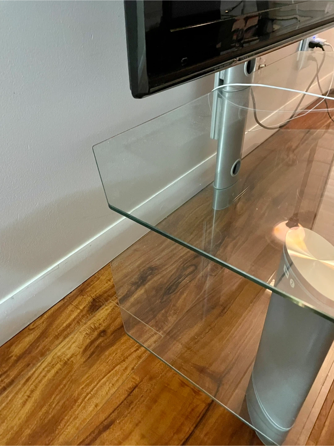 (Set) Google Chromecast with LG TV HD + Glass TV stand Like New!