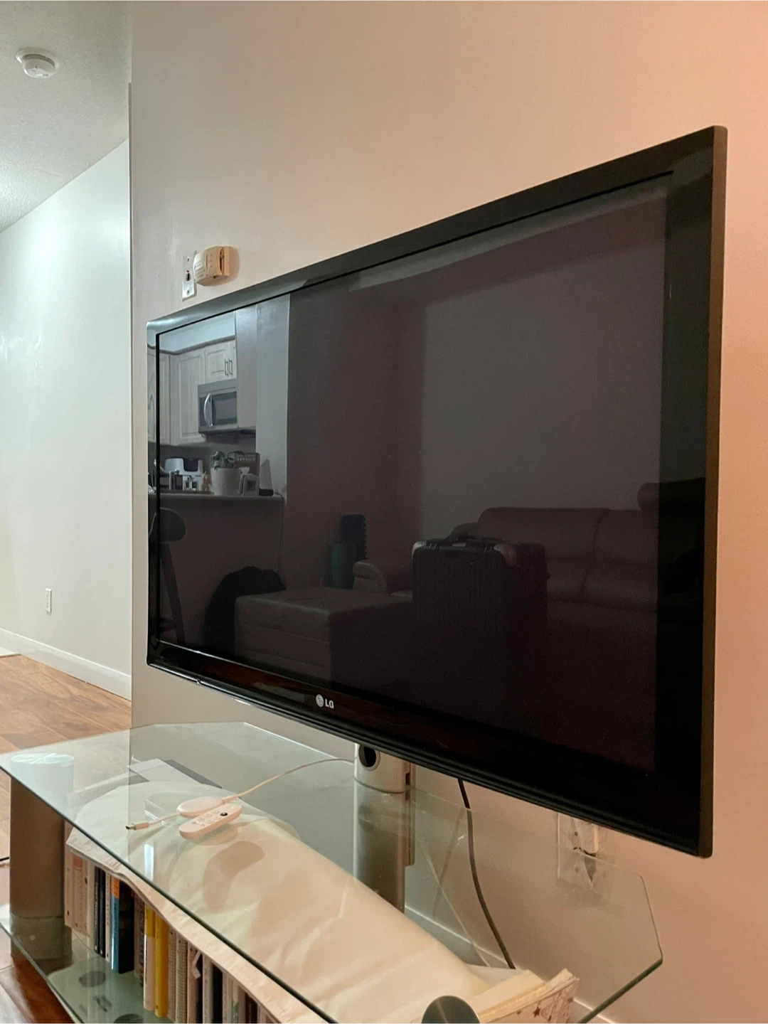 Selling a Google Chrome cast set including remote with large corner to corner 56” inch LG TV (HD). And the glass TV stand all together! It's in like-new condition and comes with the original box. Enjoy streaming your favourite shows and movies from YouTube, Netflix, Disney+, Crave, Spotify, and Google Photos right on your TV! Pick up only!