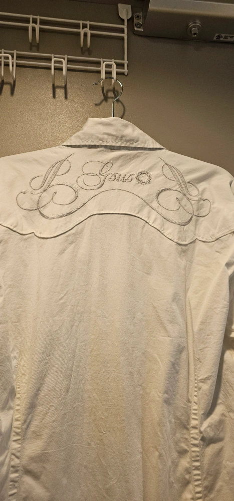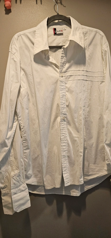 1000+I'm selling a Gsus Industries white button-up shirt in size XL. It's a stylish and comfortable shirt that would be a great addition to your wardrobe! It's in good condition and ready for a new home