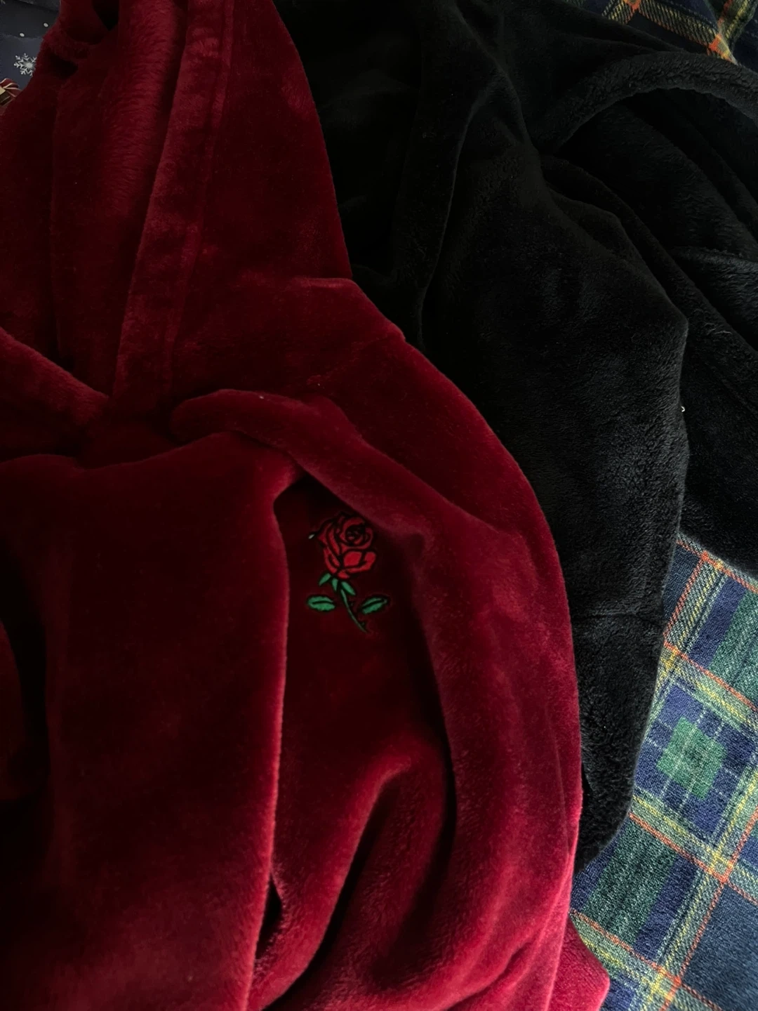Cozy Forever 21 hoodie in a lovely burgundy colour! It's super soft and features a cute rose embroidery. Perfect for adding a touch of warmth and style to your wardrobe