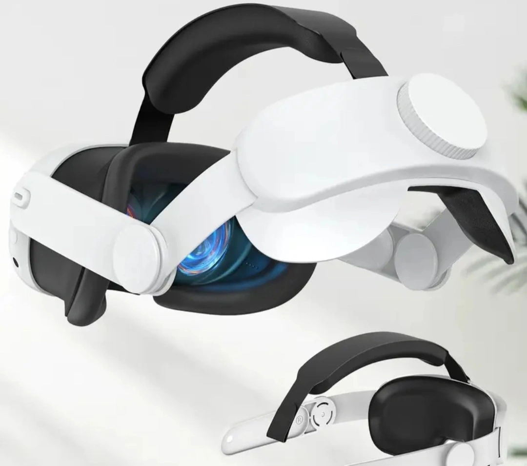Modern accessories: a comfortable support belt for the virtual reality head, and a flexible neck phone holder.