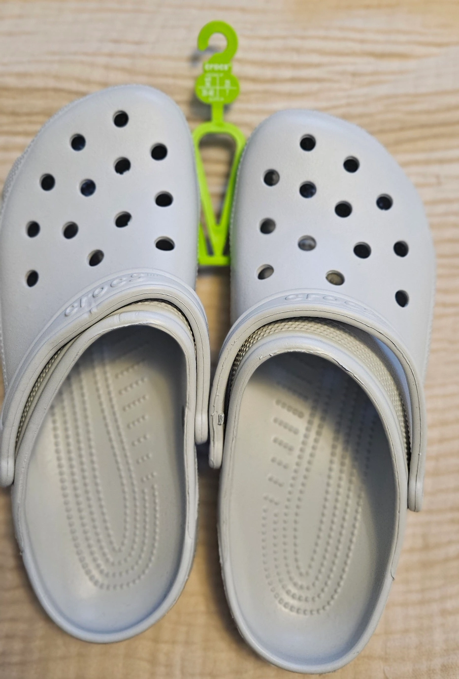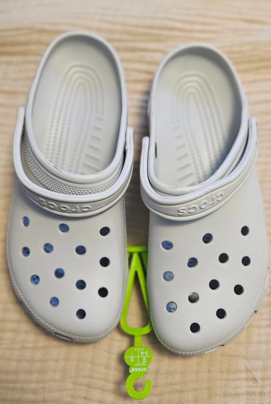 131I'm selling a pair of brand new Crocs Classic Clogs! They are a size 11 and come in a neutral grey colour. Perfect for wearing around the house or running errands!