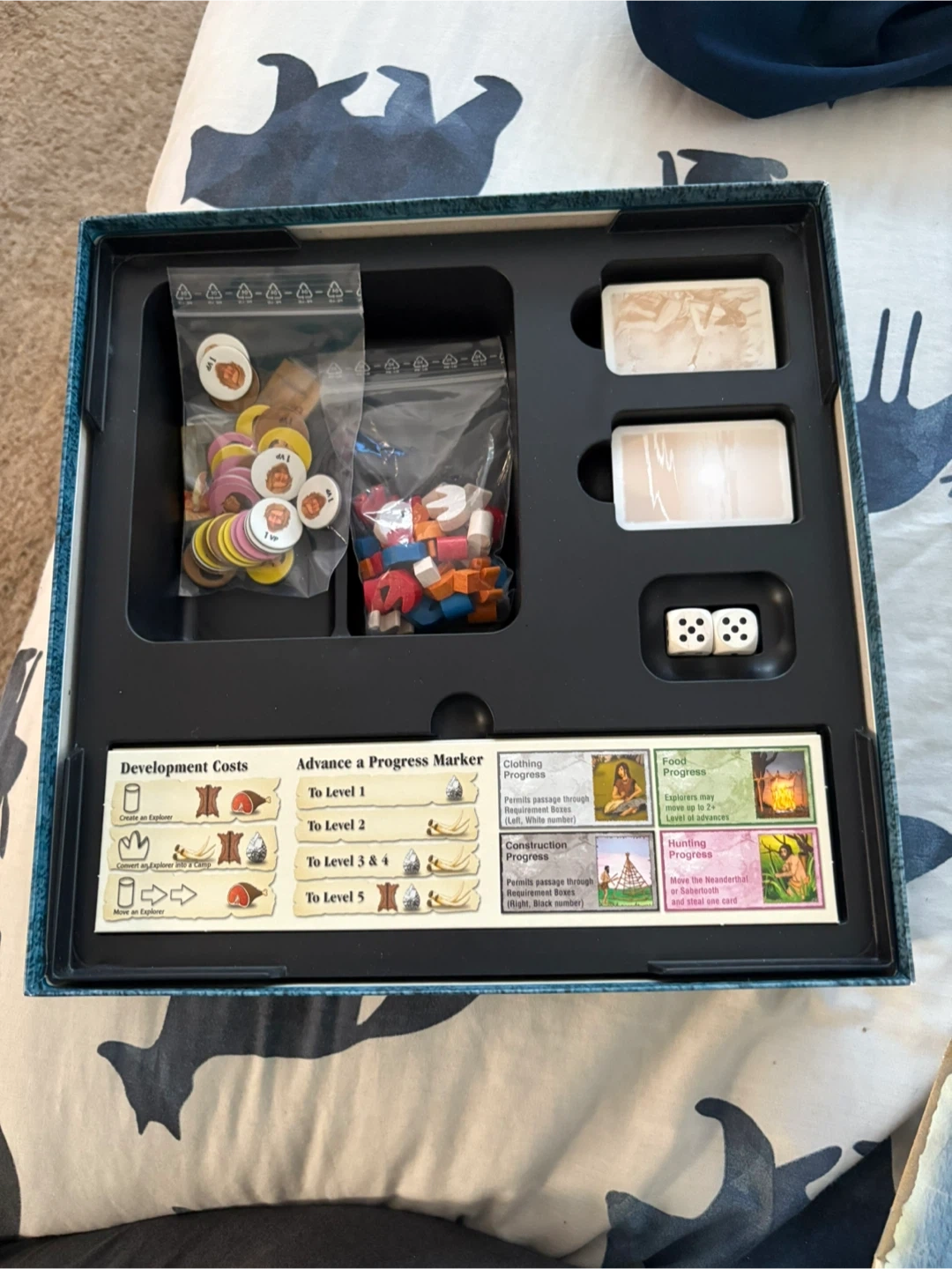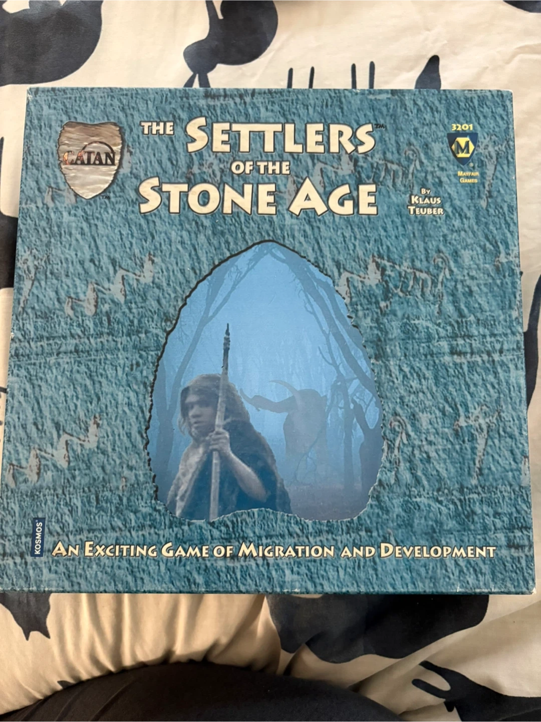 Selling The Settlers of the Stone Age board game! It's an exciting game of migration and development. Includes all the pieces and the box