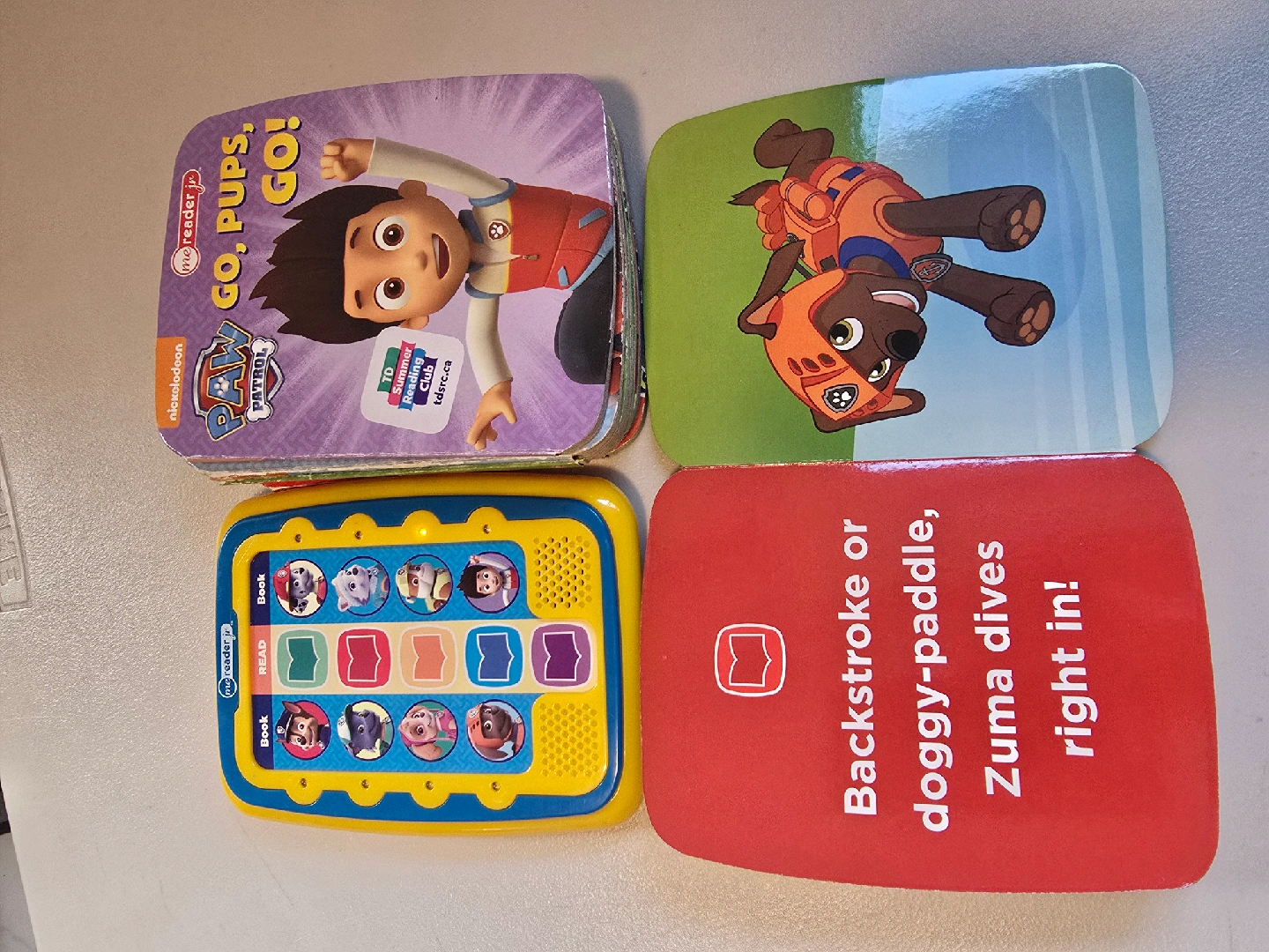 176Pick up in North York Keele St and Wilson Ave area ▶️ Multi Family Account - Cash only AI: Selling a Nickelodeon Paw Patrol Electronic Reader with an 8-Book Library! This set is perfect for young readers who love Paw Patrol. It includes an interactive electronic reader and eight engaging books featuring your favourite Paw Patrol characters. Great for early learning and fun reading adventures