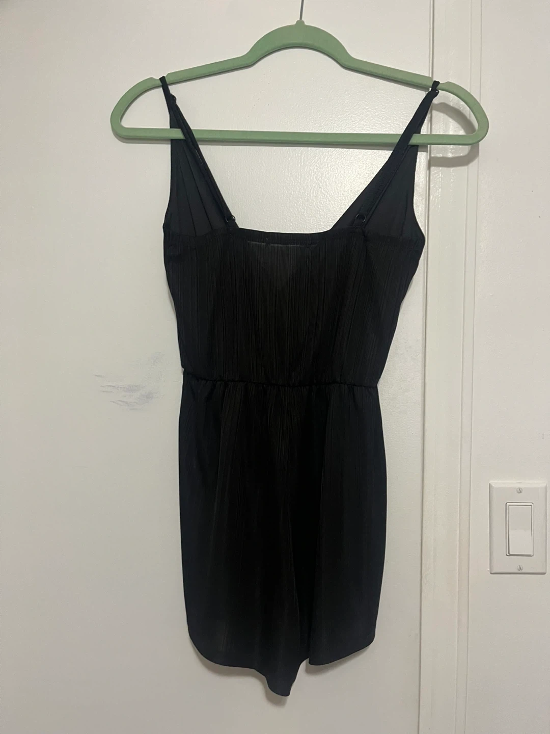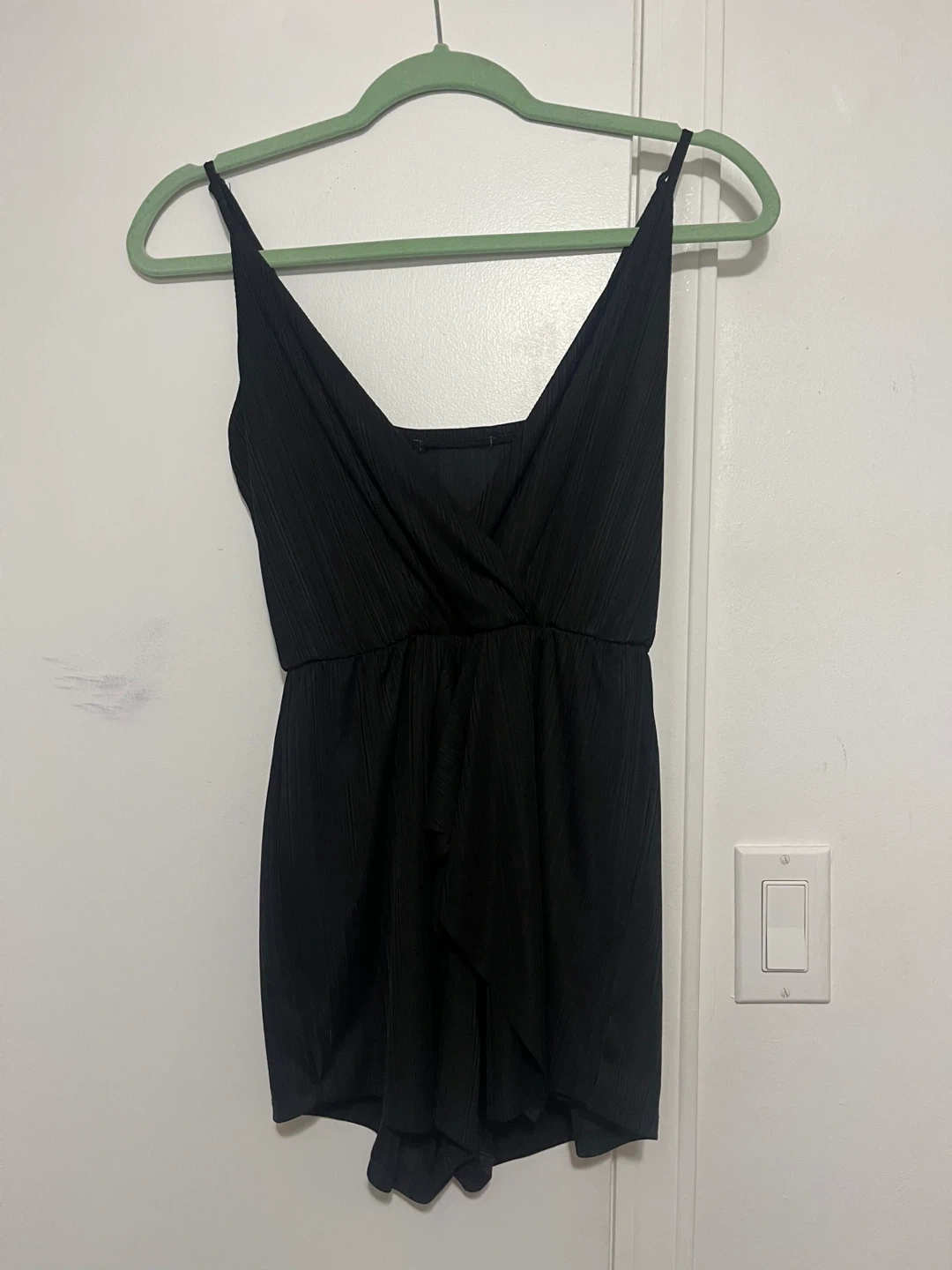 Selling a cute black romper in size small! It's in great condition and would be perfect for a night out or a casual summer day. The material is lightweight and comfortable. Feel free to message me with any questions!