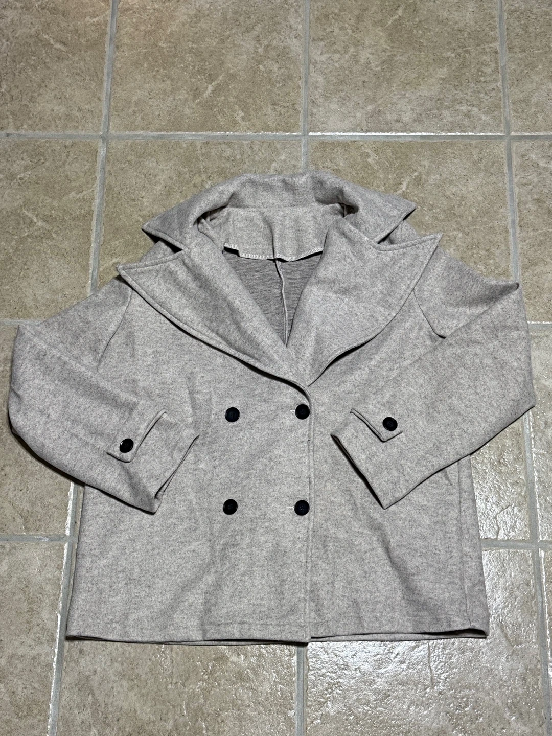 Selling a stylish white beige coat. It's made from a cozy wool blend, perfect for staying warm during the colder months. The coat features a classic cut and is in great condition. A versatile piece that can be dressed up or down!