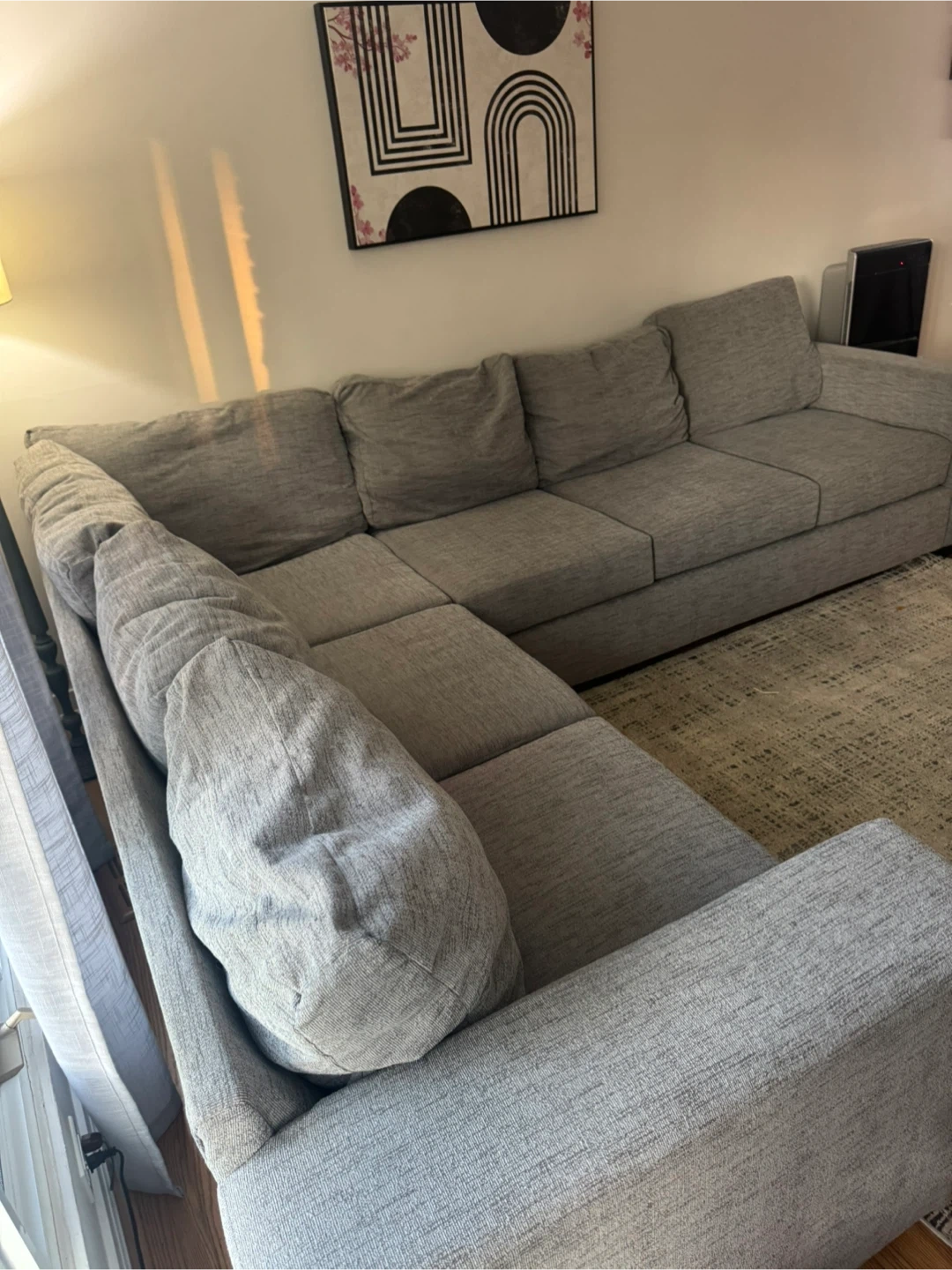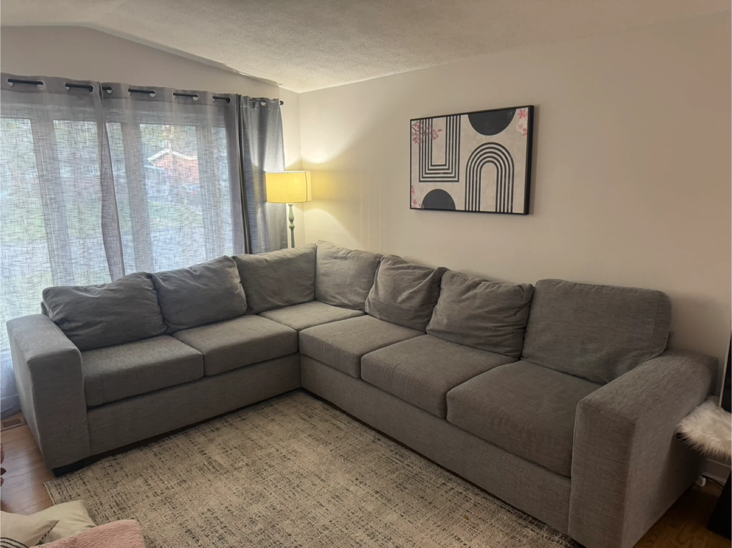 Selling a comfortable grey sectional couch! It's in great condition and ready for a new home. Perfect for lounging and movie nights with the family